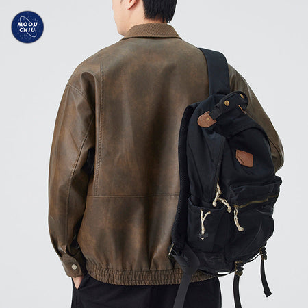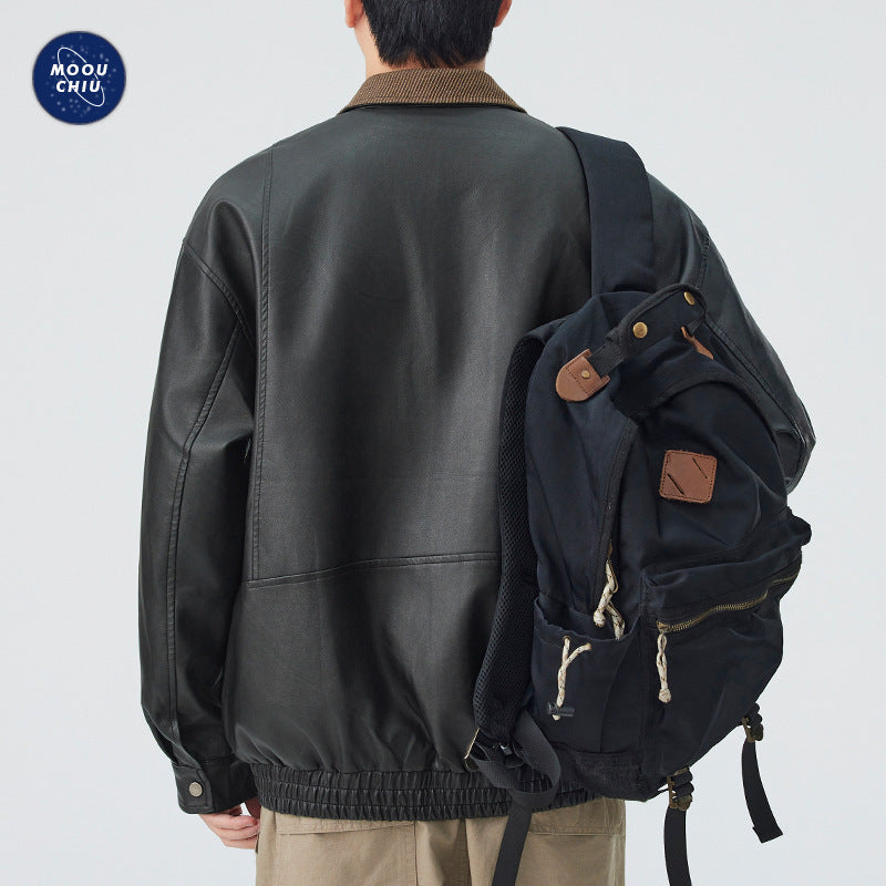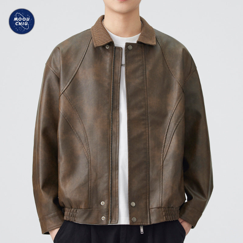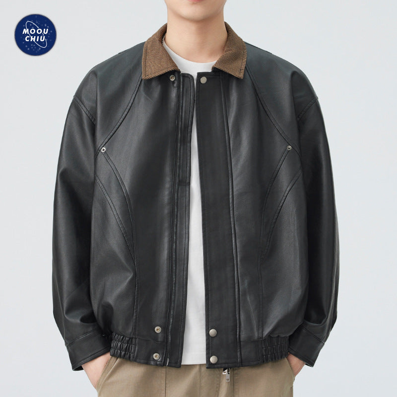 Muqiu Men’s PU Leather Jacket | 2025 Autumn Motorcycle Windproof