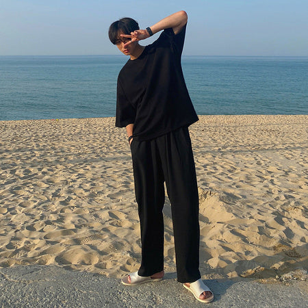 Beat the summer heat with these men’s Korean-style ice silk pants. Lightweight, drapey, and effortlessly stylish, they’re built for relaxed comfort.