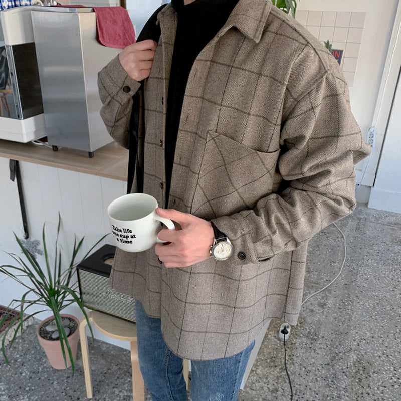 Winter Thick Woolen Plaid Overshirt Men’s Casual Coat