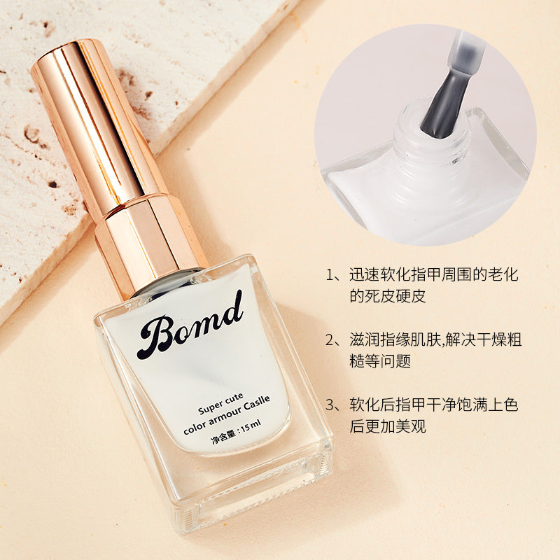 Softens cuticles and dead skin for easier manicure and grooming.