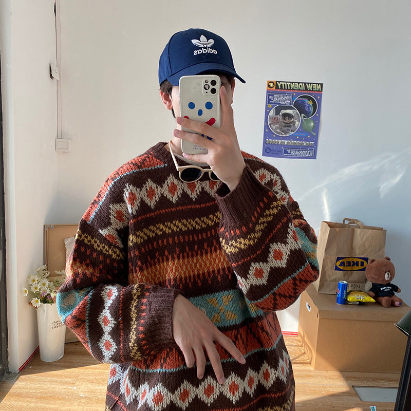 Men’s Retro Loose Sweater – Korean Fashion Thick Knit