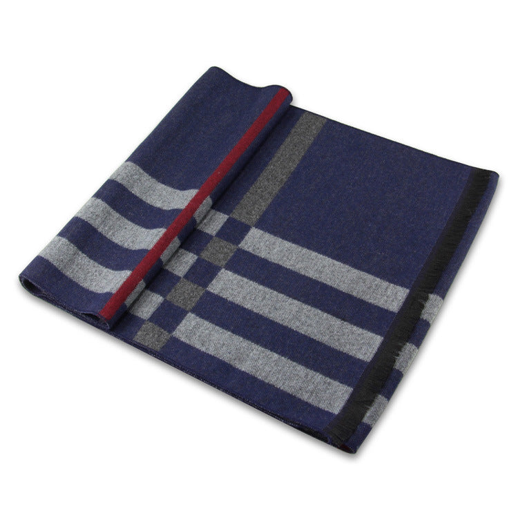 Navy Blue Plaid Scarf Winter Warm Korean Style Couples Men Women
