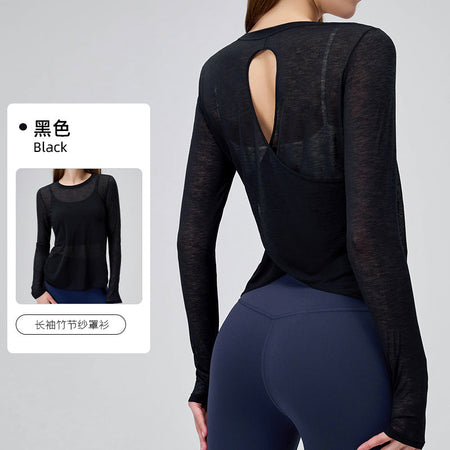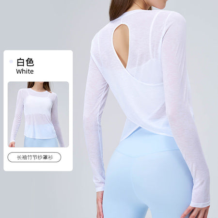 Benefits: Bamboo yarn breathable fabric | Long sleeves & hollow back | Slim, flattering yoga fit | 2025 new high-end style | Lightweight and comfortable