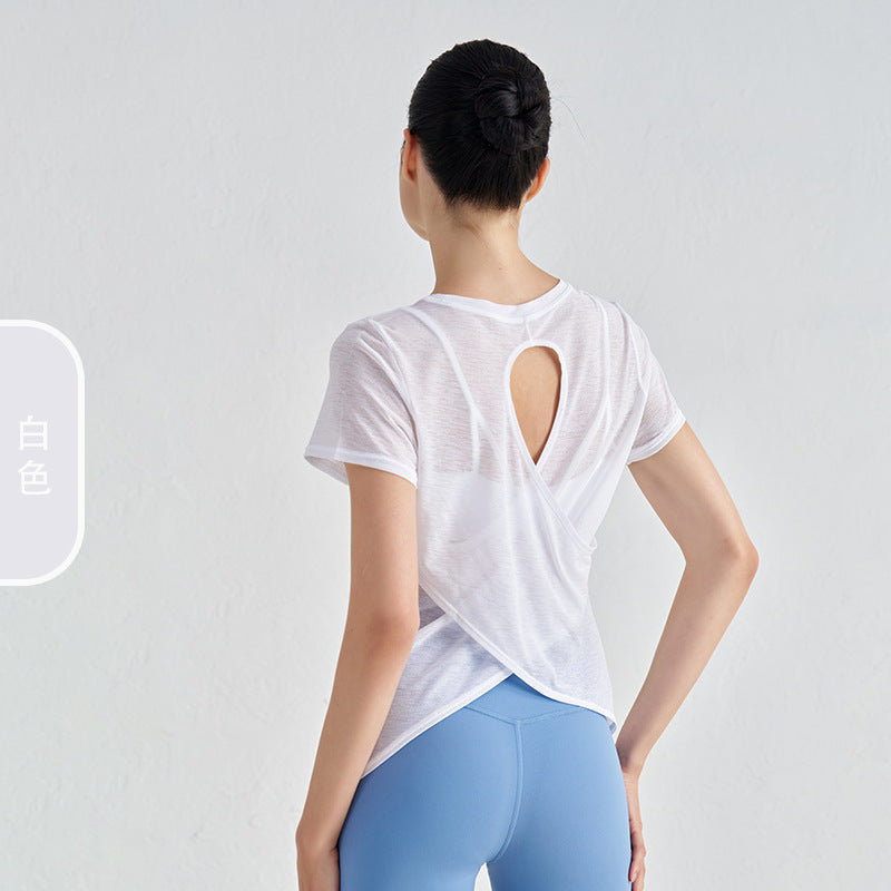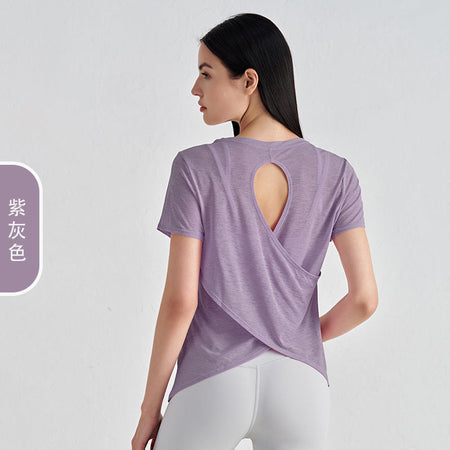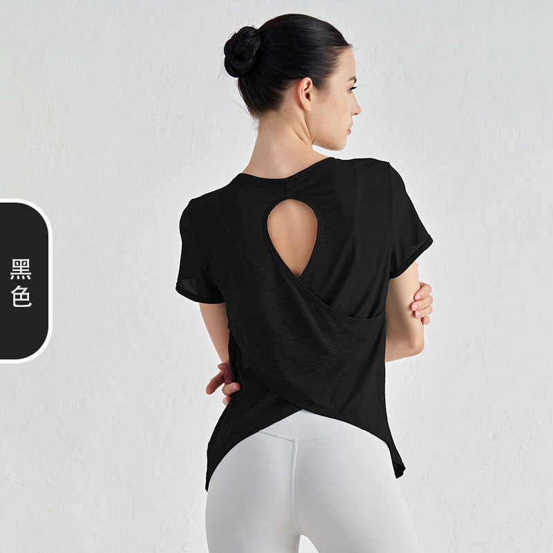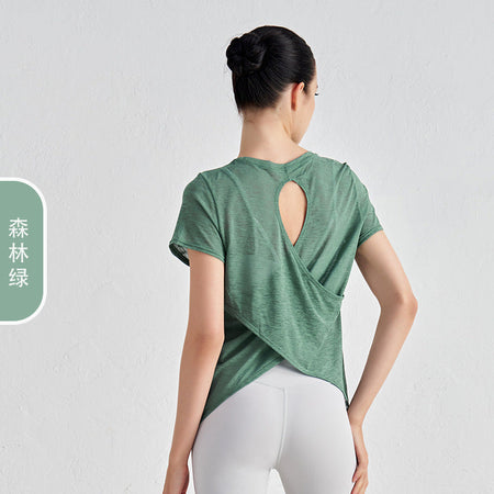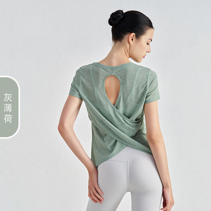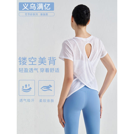 Crafted from premium bamboo yarn fabric, this T-shirt is soft, eco-friendly, and highly breathable, ensuring excellent moisture-wicking to keep you dry during intense exercise. The round neck design provides classic comfort, while the cut-out beautiful back adds a modern, fashionable touch. Its short-sleeved, slim-fit style allows freedom of movement, making it ideal for yoga, running, or summer fitness sessions. 🌟