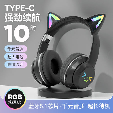 BT618 Cat Ear Wireless Bluetooth Headset | RGB LED Lights