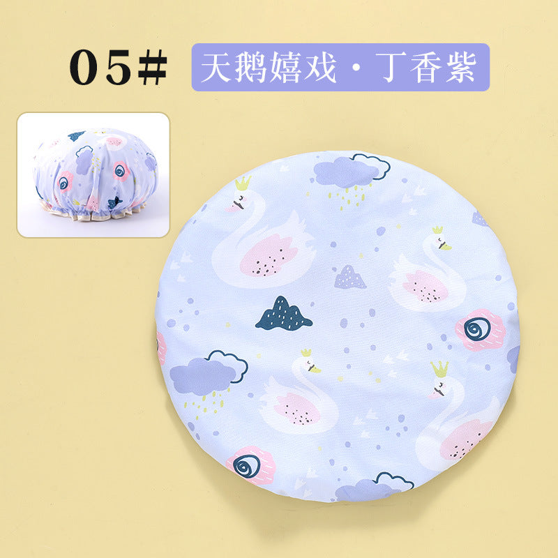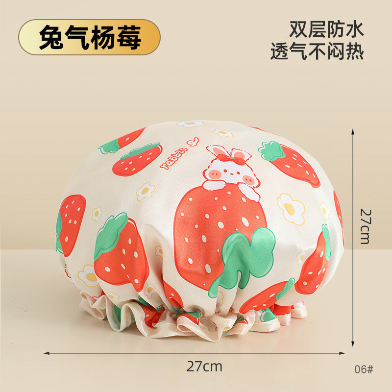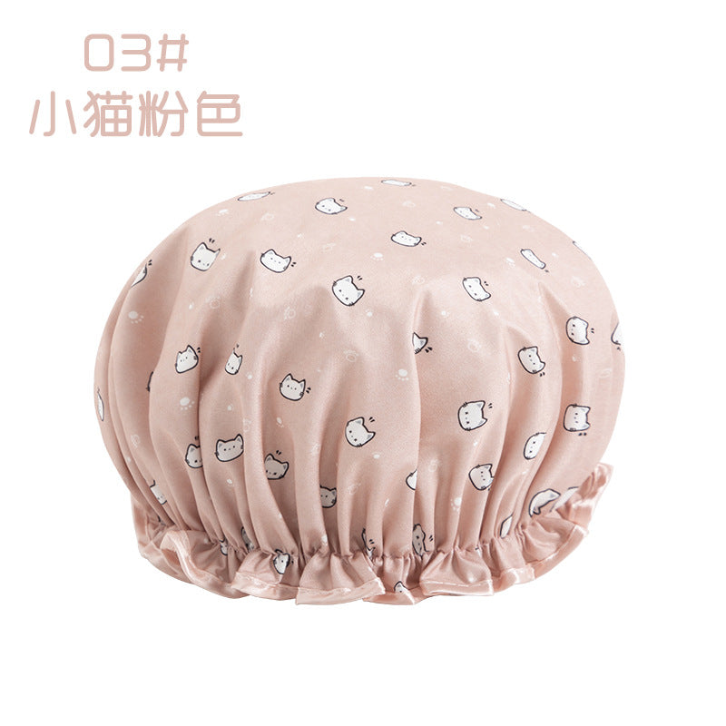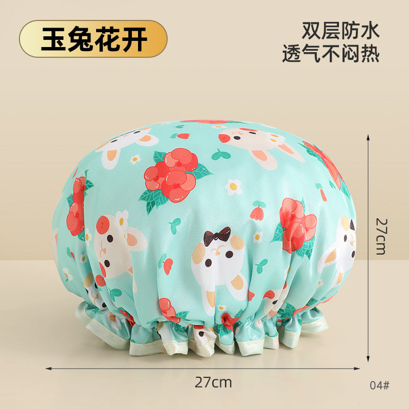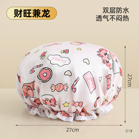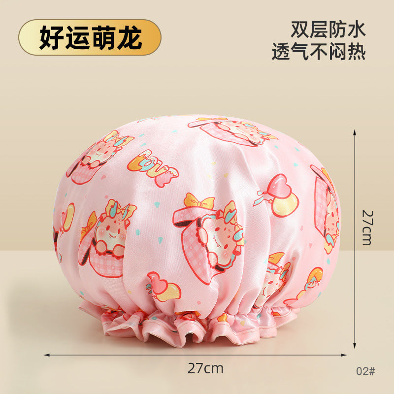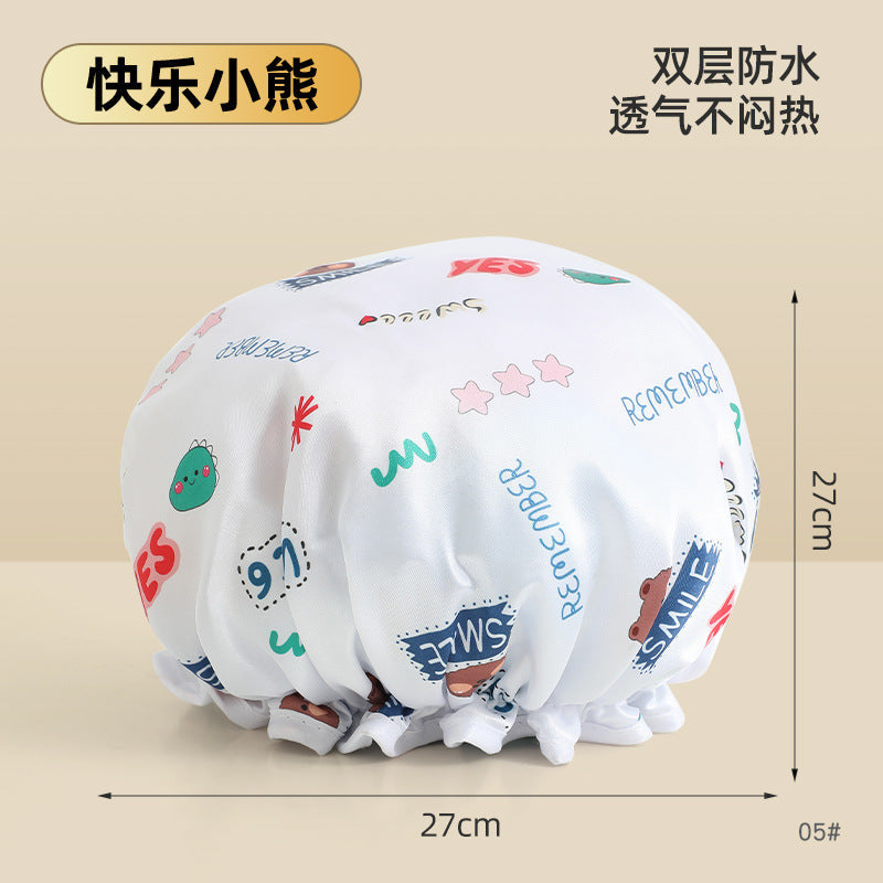 Cute Cartoon Double-Layer Waterproof Shower Cap
