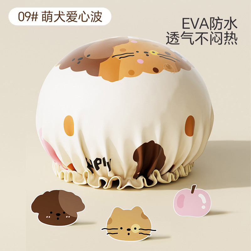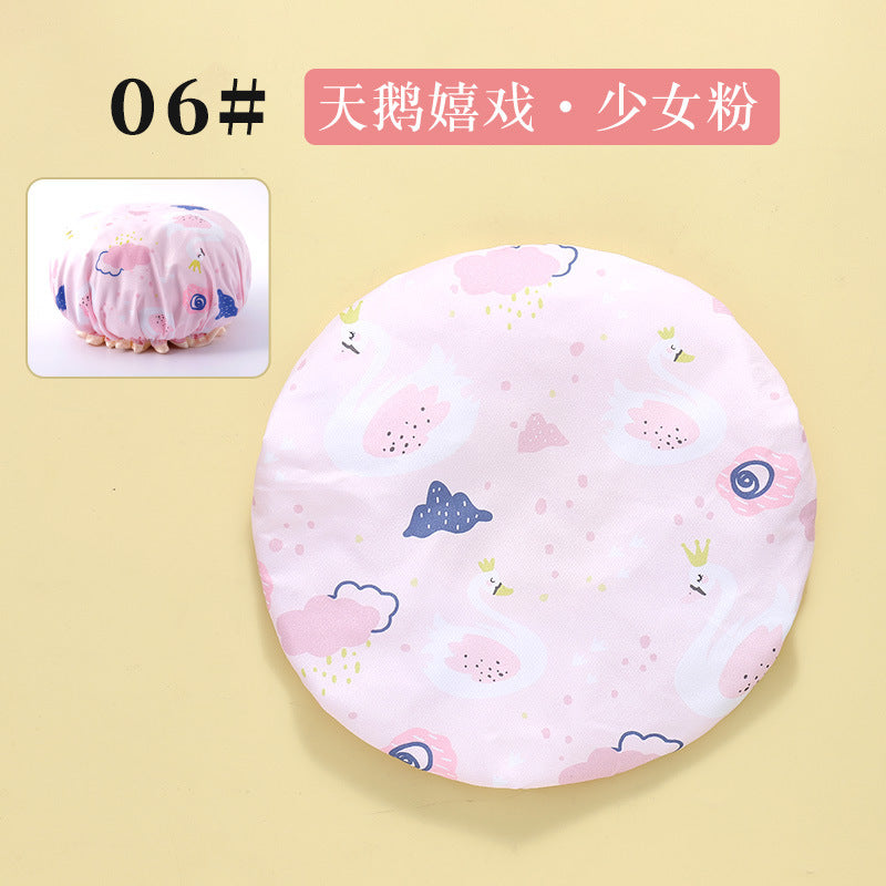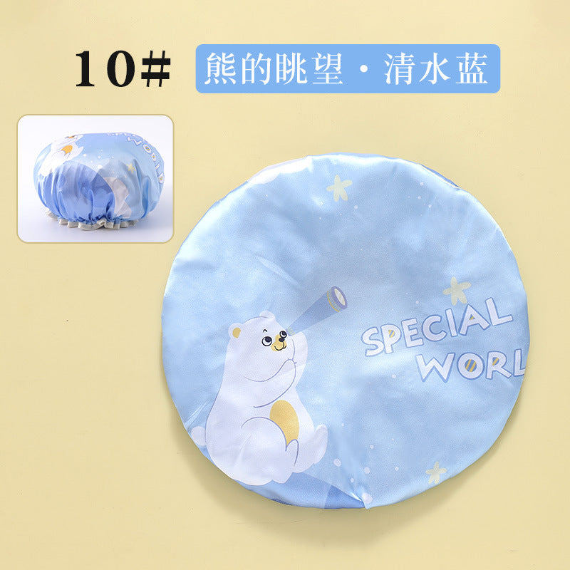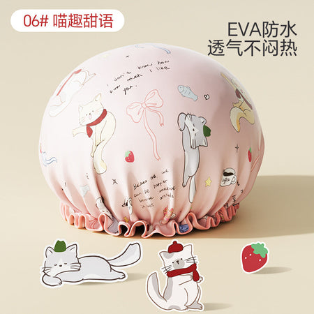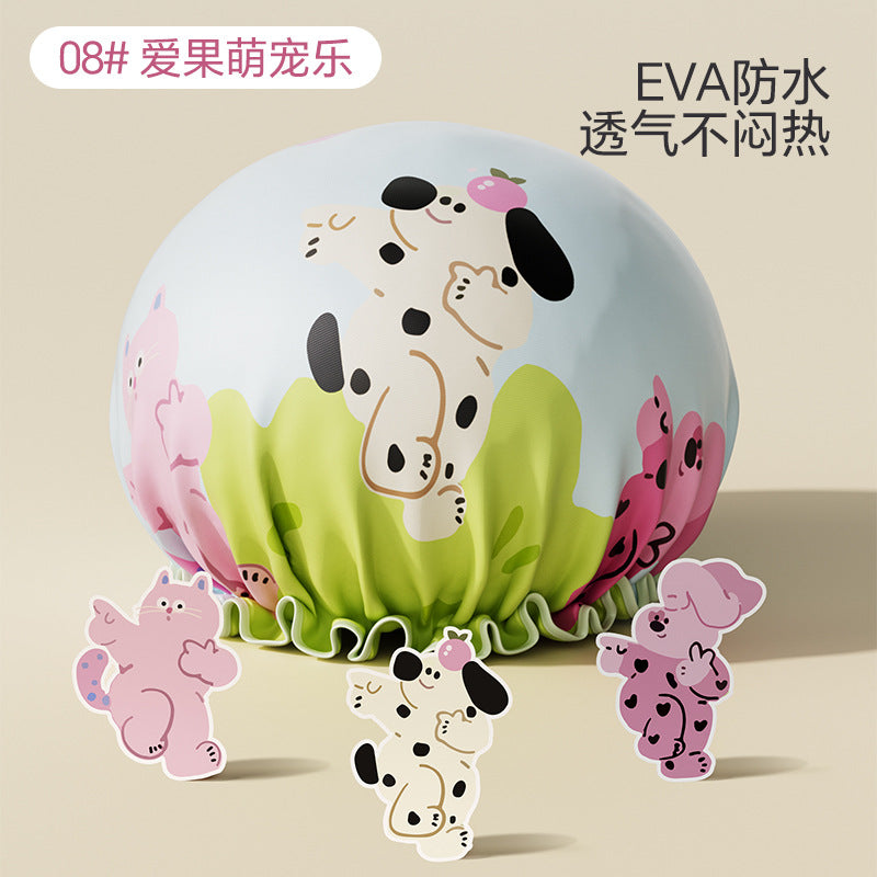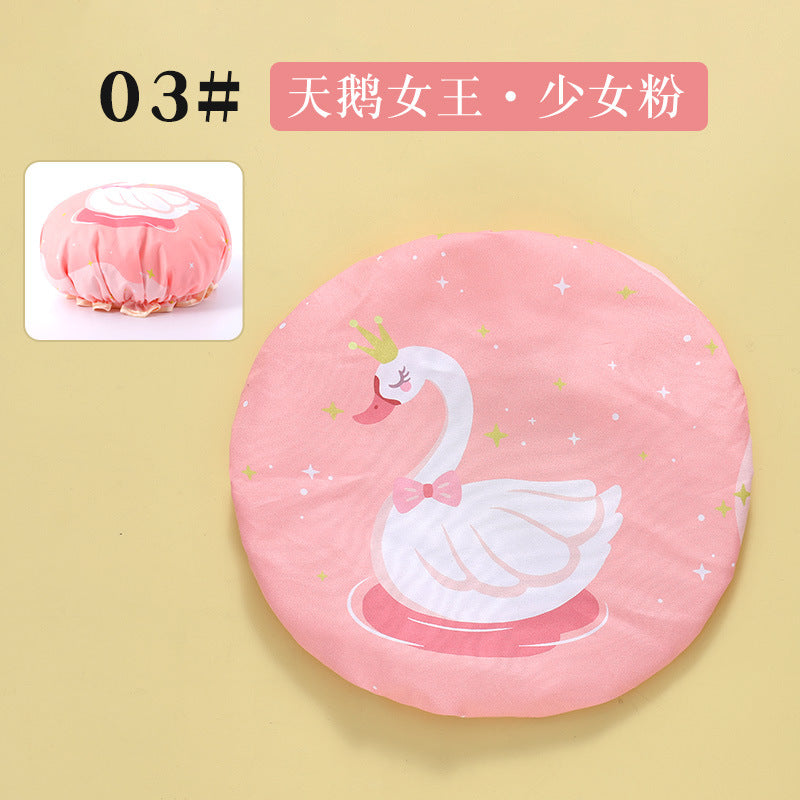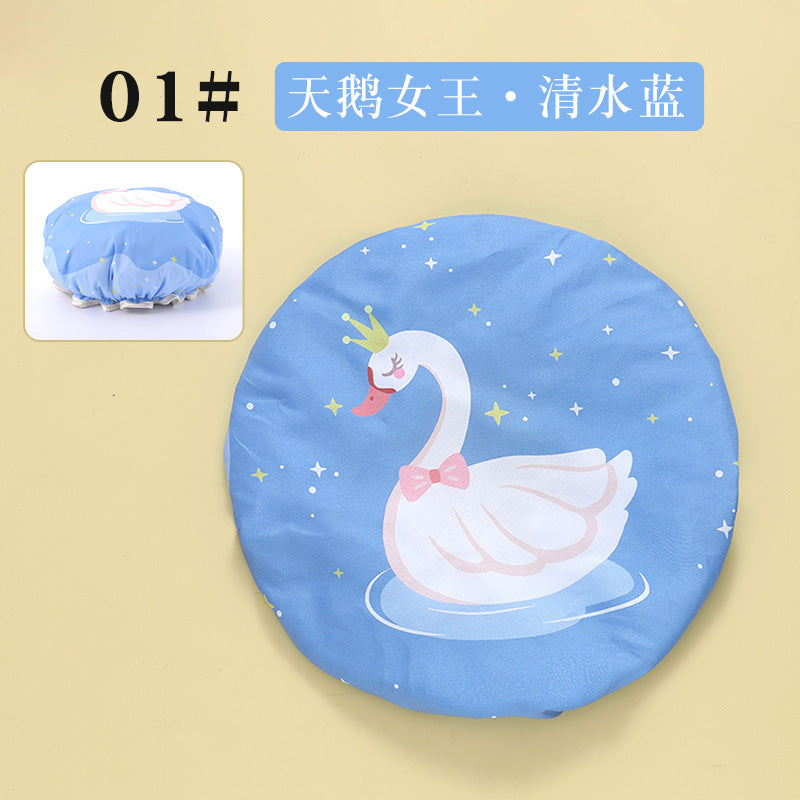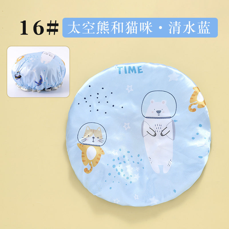 Cute Cartoon Double-Layer Waterproof Shower Cap