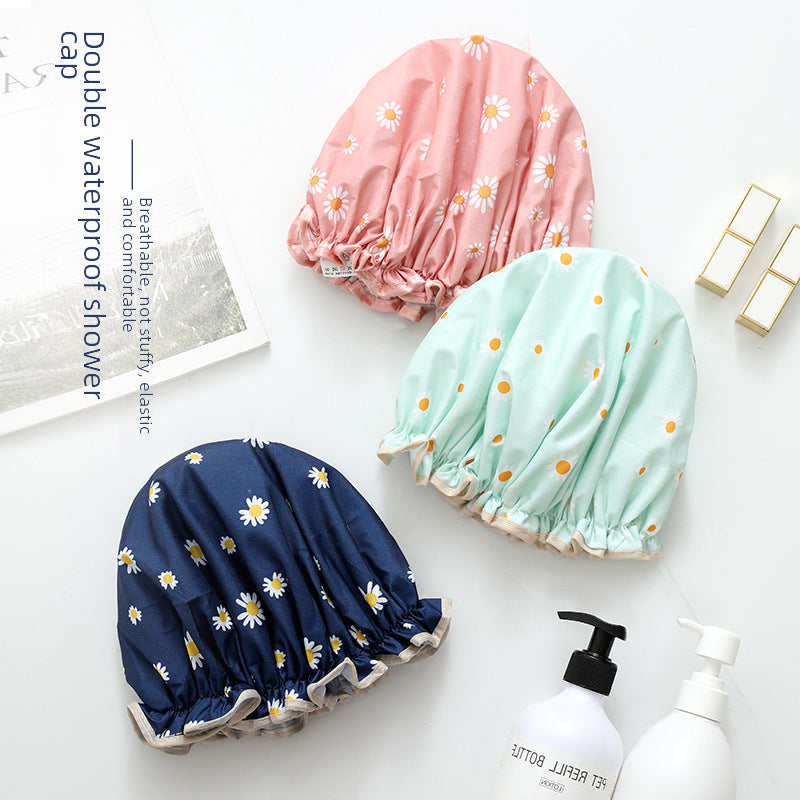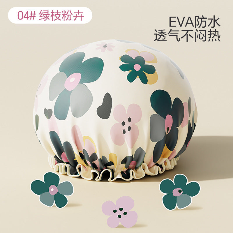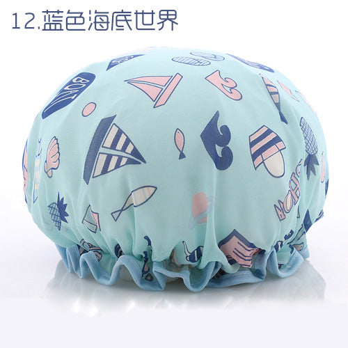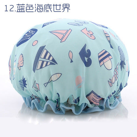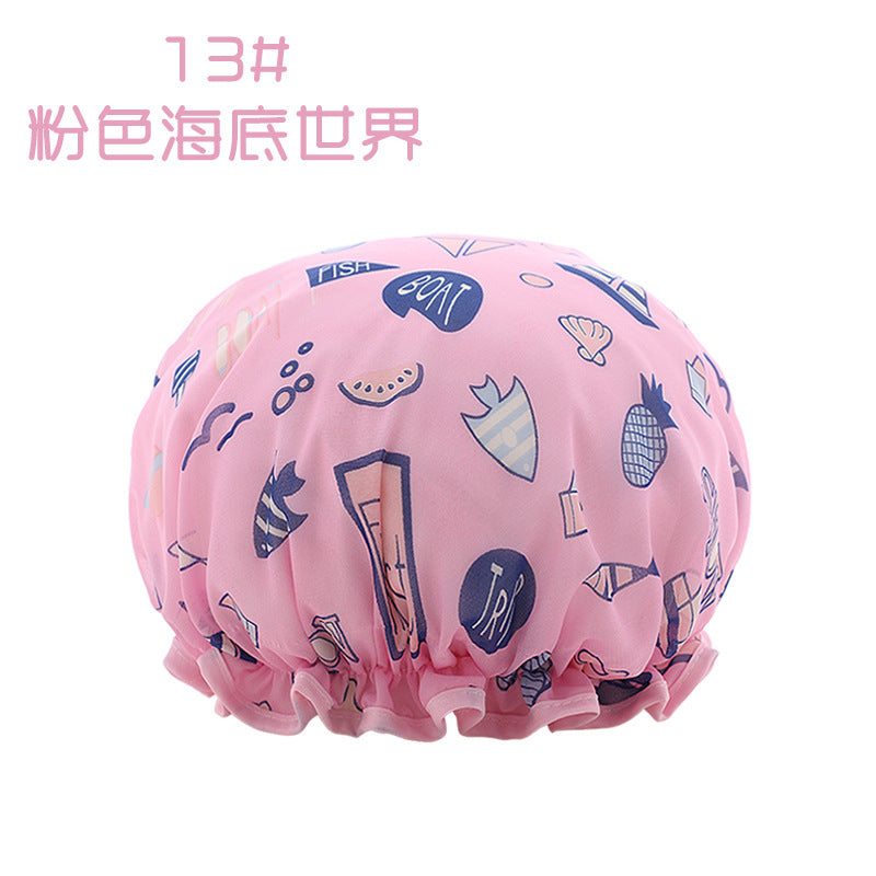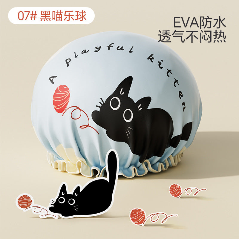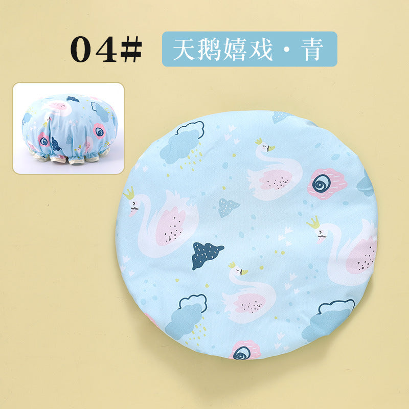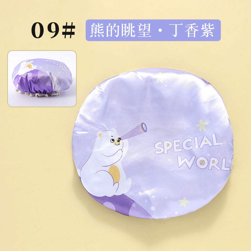 Cute Cartoon Double-Layer Waterproof Shower Cap