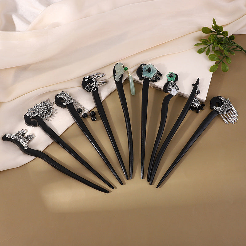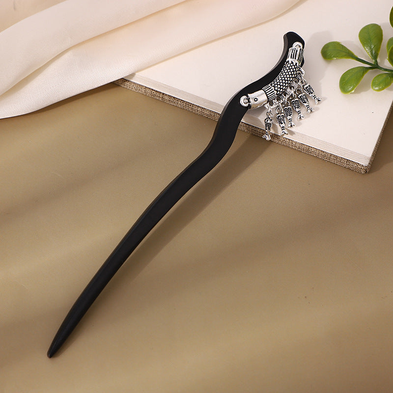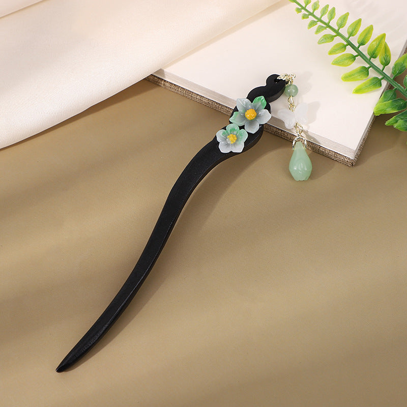 Imitation Ebony Butterfly Tassel Hairpin β Antique Hanfu Style