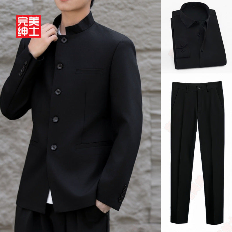 Men’s Chinese Stand Collar Tunic Suit Business Dress