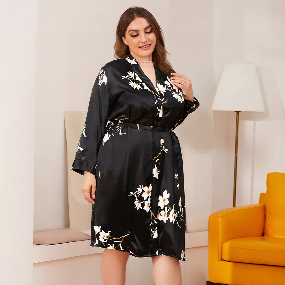 Stay stylish and comfy at home with this plus-size long sleeve printed ice silk robe for women ππ. Designed for all body types, this short nightgown-style bathrobe features a soft, cooling ice silk fabric and elegant prints β perfect for summer lounging or year-round use πΏβοΈ.