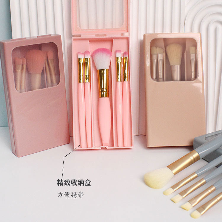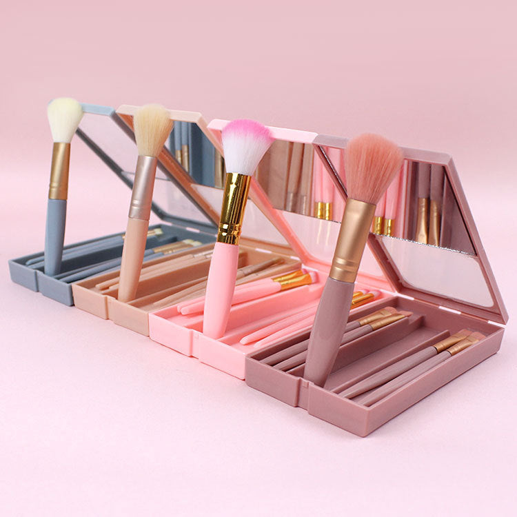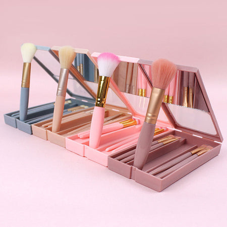 5-Pack Portable Makeup Brush & Mirror Box Set – Multi-Functional