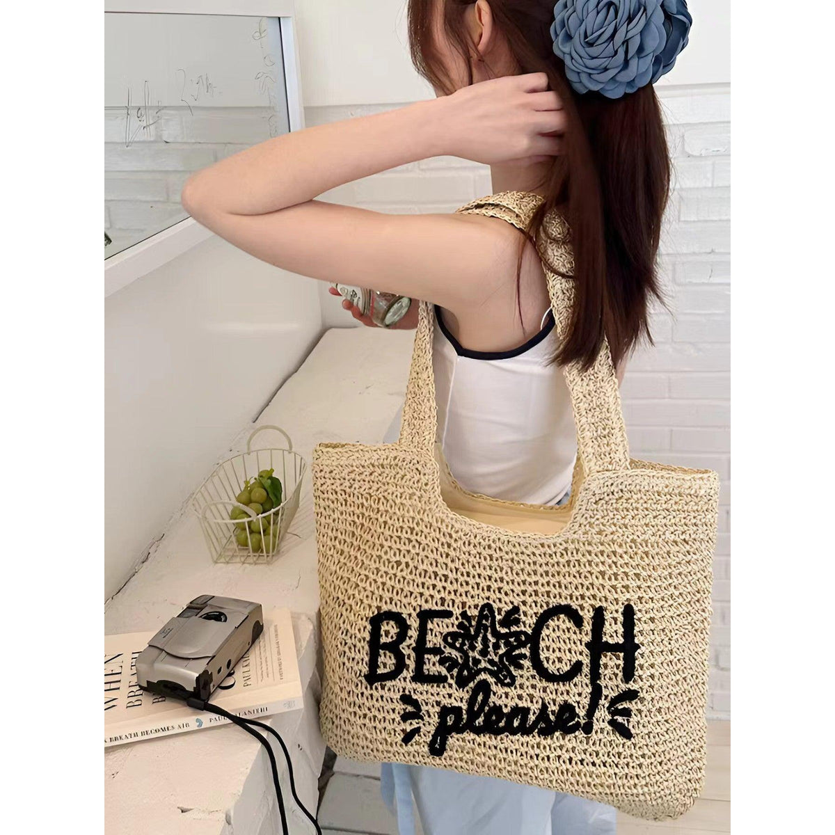 Designed for women who love spacious yet lightweight bags, it offers a large capacity to hold all your essentials — from sunscreen and sunglasses to books and snacks 🕶️📚🍉. The sturdy shoulder straps make it easy to carry on beach trips, shopping days, or casual outings 👜🏖️.