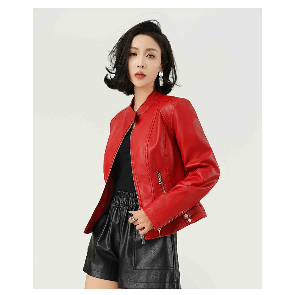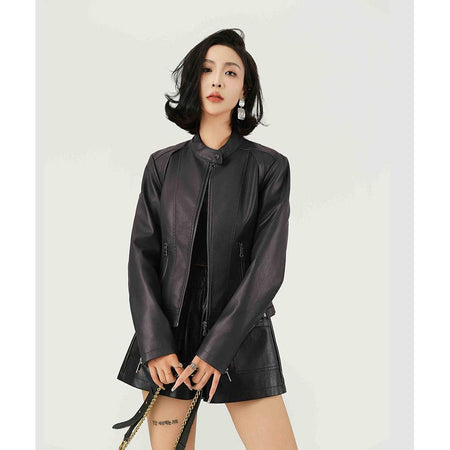 Women’s Stand Collar PU Leather Short Jacket