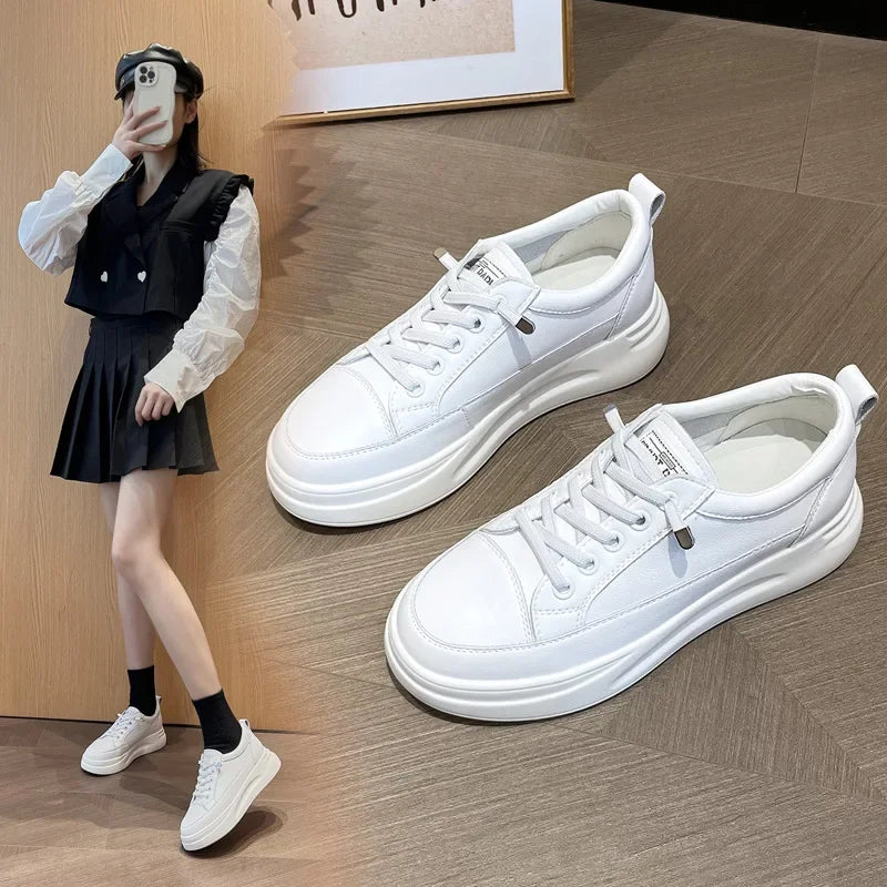 Women’s Genuine Leather White Sneakers – Stylish & Comfortable
