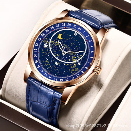 Featuring a starry gypsophila dial, calendar display, and luminous hands, this watch delivers modern elegance with everyday practicality 🌌🕒.