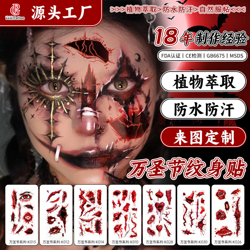 Halloween Scar Tattoo Sticker – Waterproof Horror Temporary