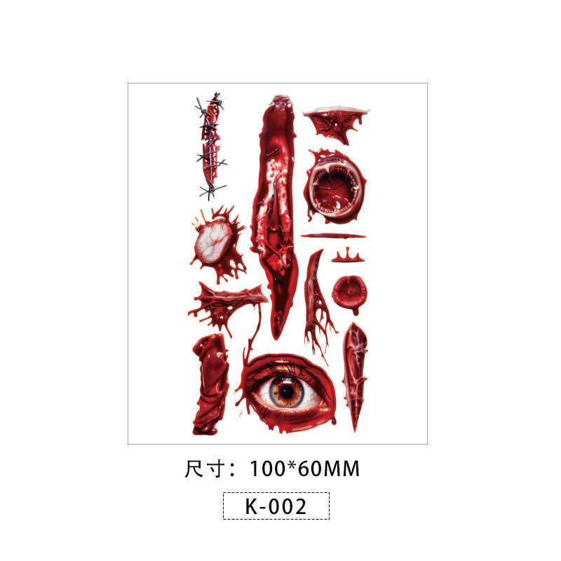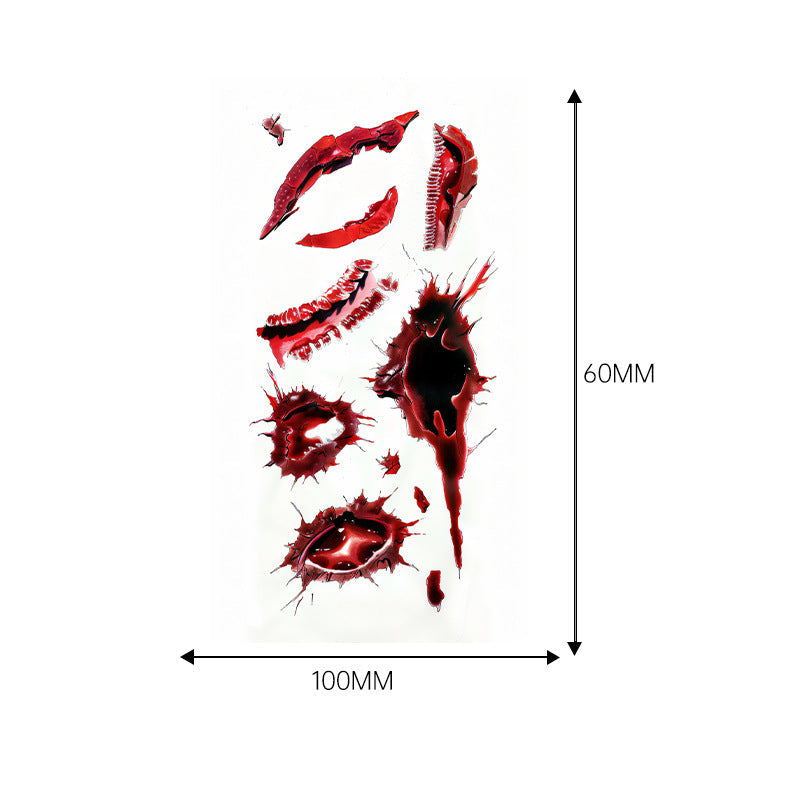 Get ready for a spooky transformation with the Halloween Scar Tattoo Sticker! 🩸 Perfect for parties, cosplay, or Halloween, this waterproof temporary tattoo creates realistic bloody wounds in seconds.