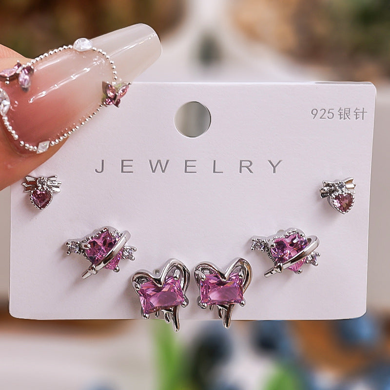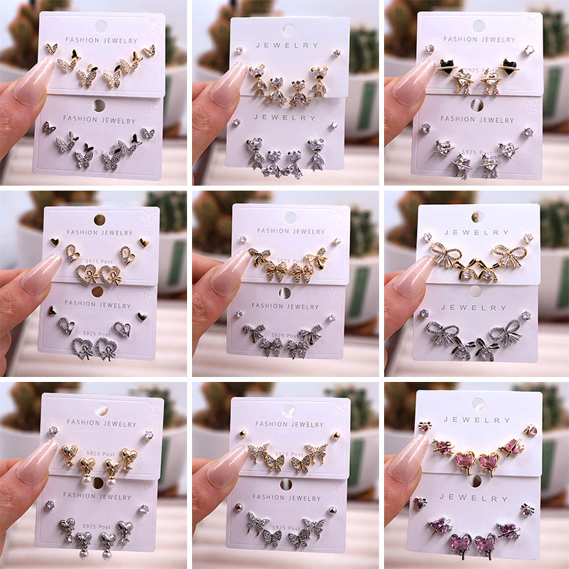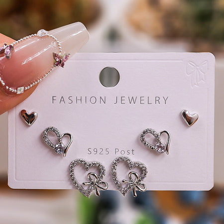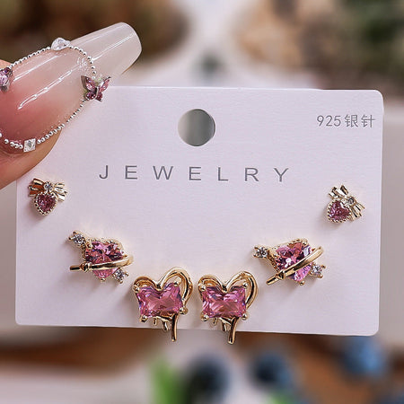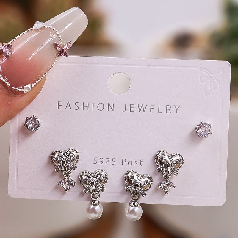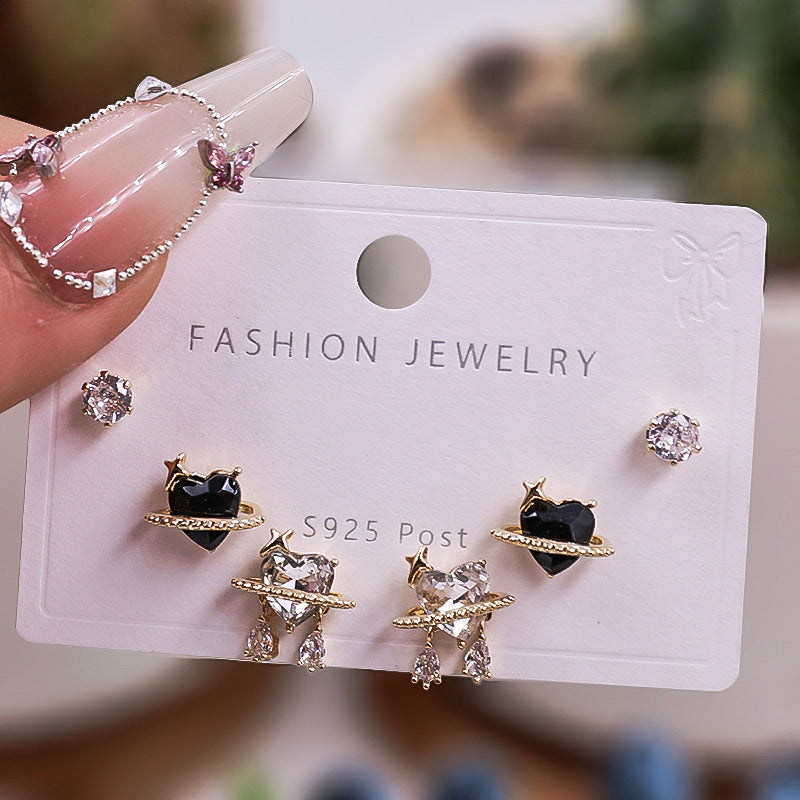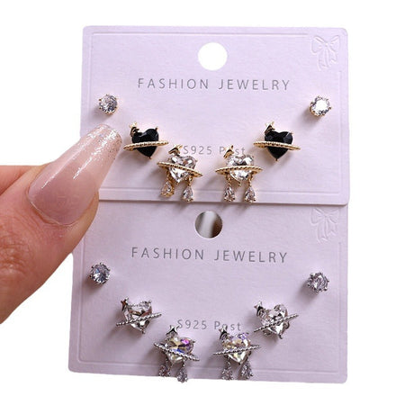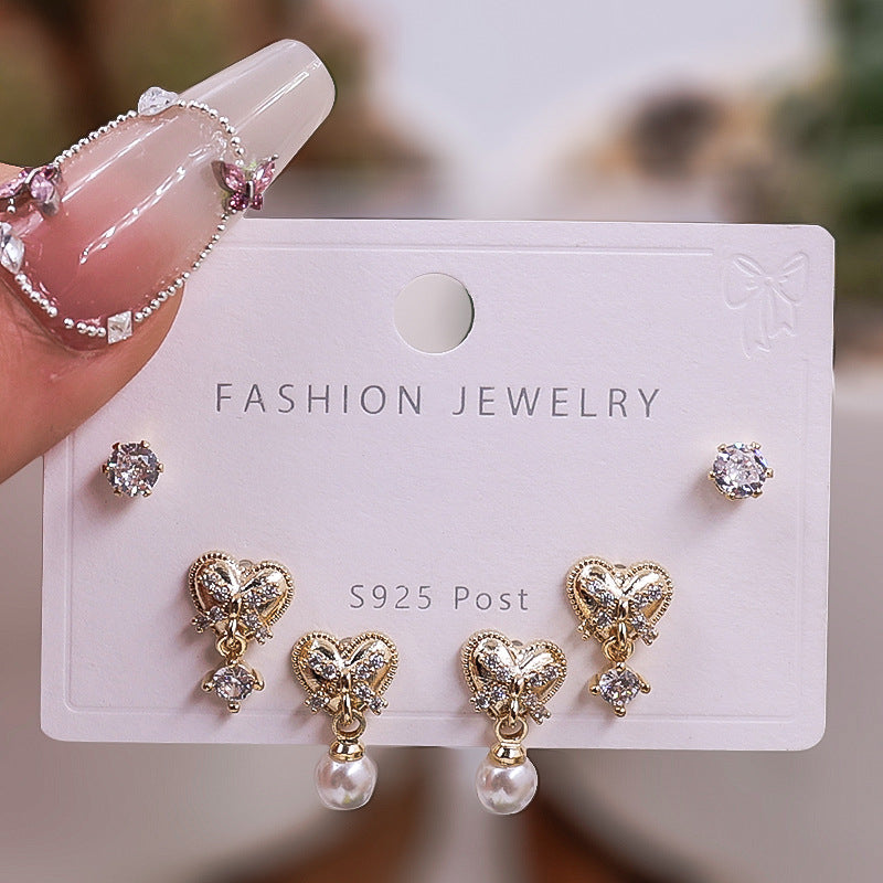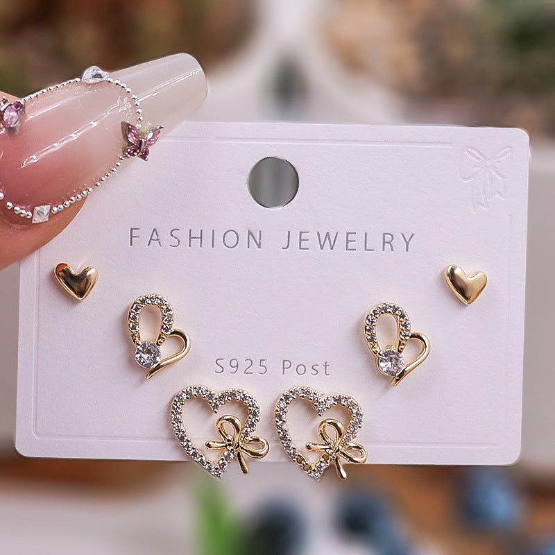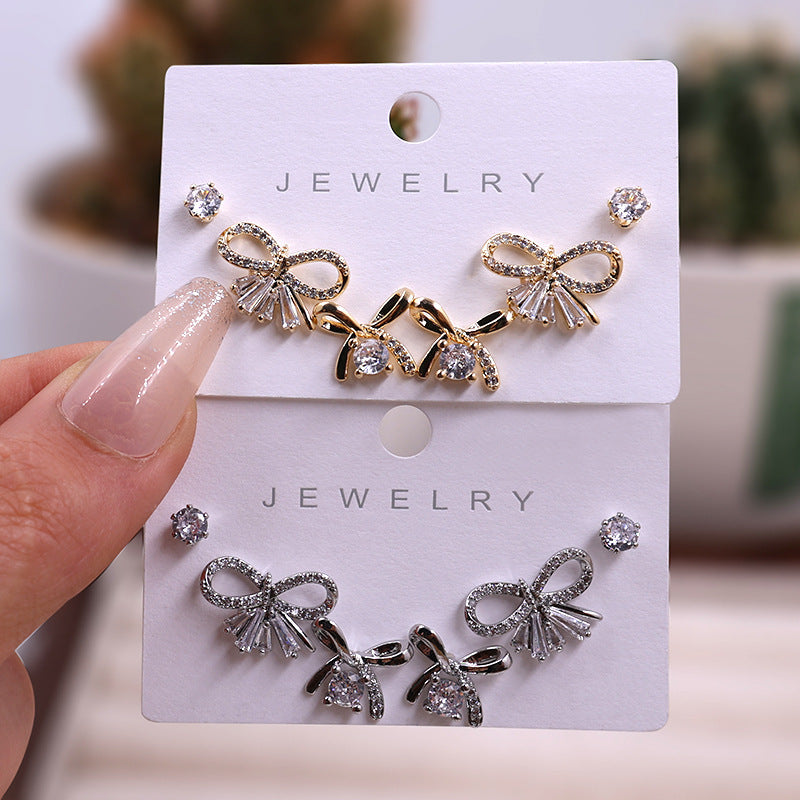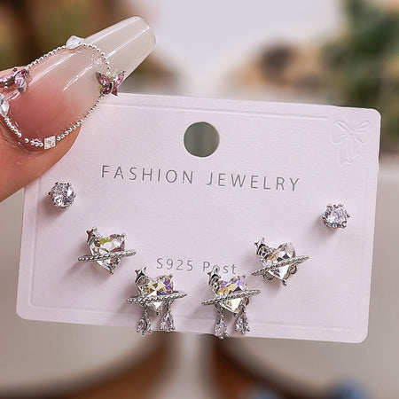 Gold Silver Zircon Trio Earring Set – Elegant Women’s Jewelry