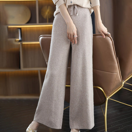 Women's High-Waist Knit Wide-Leg Flared Pants
