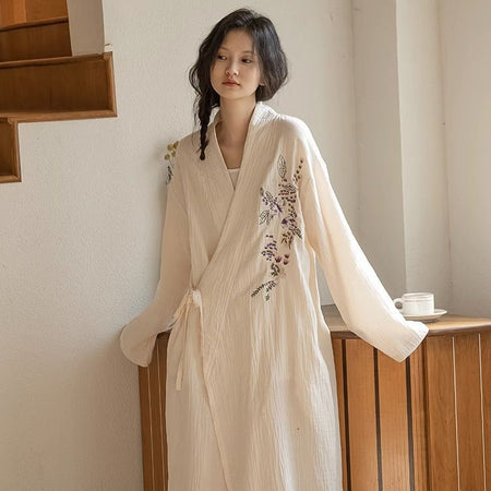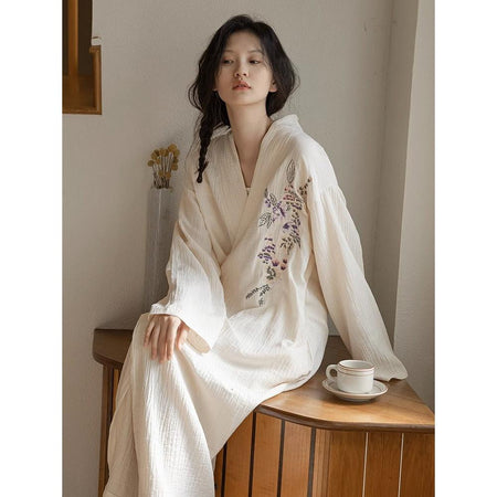 ✨ Elevate your loungewear with this high-end Japanese style kimono nightgown, designed for women who love elegance and comfort. Perfect for autumn and cooler nights, this long-sleeved pajama robe combines traditional charm with modern style.