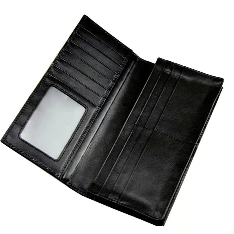 Woven Texture Cowhide Long Business Wallet