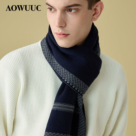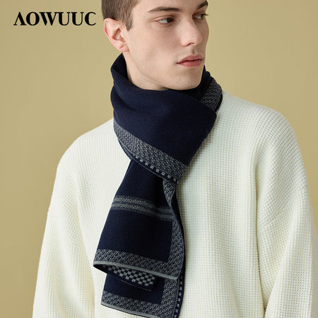 Men’s Wool Striped Plaid Scarf Thick Warm Gift
