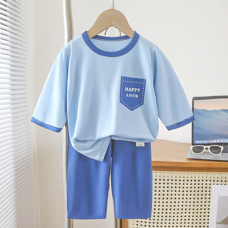 Made from soft, breathable fabric, this pajama set ensures skin-friendly comfort while allowing free movement for sleep, play, or lounging. The thin seven-point sleeve top paired with matching pants creates a stylish and practical outfit, perfect for children who need a comfortable yet functional homewear set during the hot summer months.