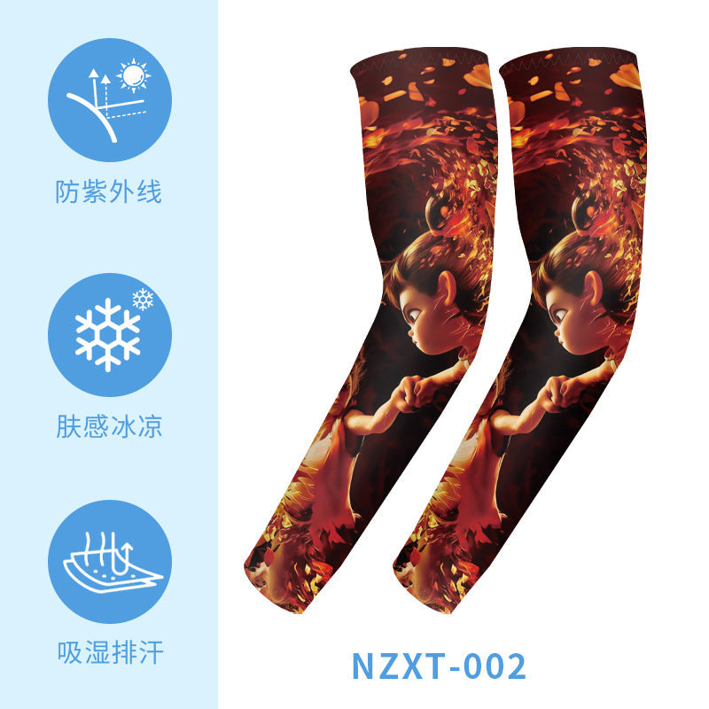 Nezha Print Cycling Ice Silk Sleeves | Breathable UV Guard