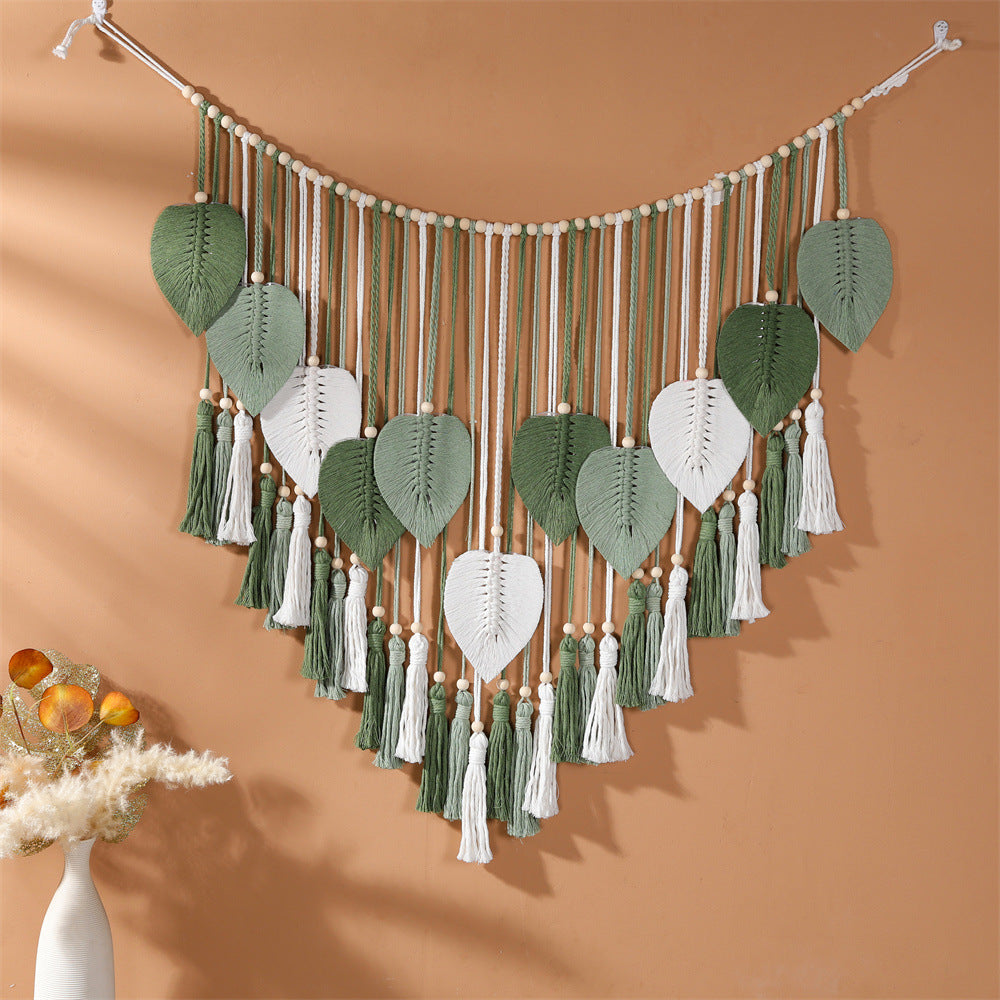 ๐งถ Hand-woven cotton rope with leaf & tassel details