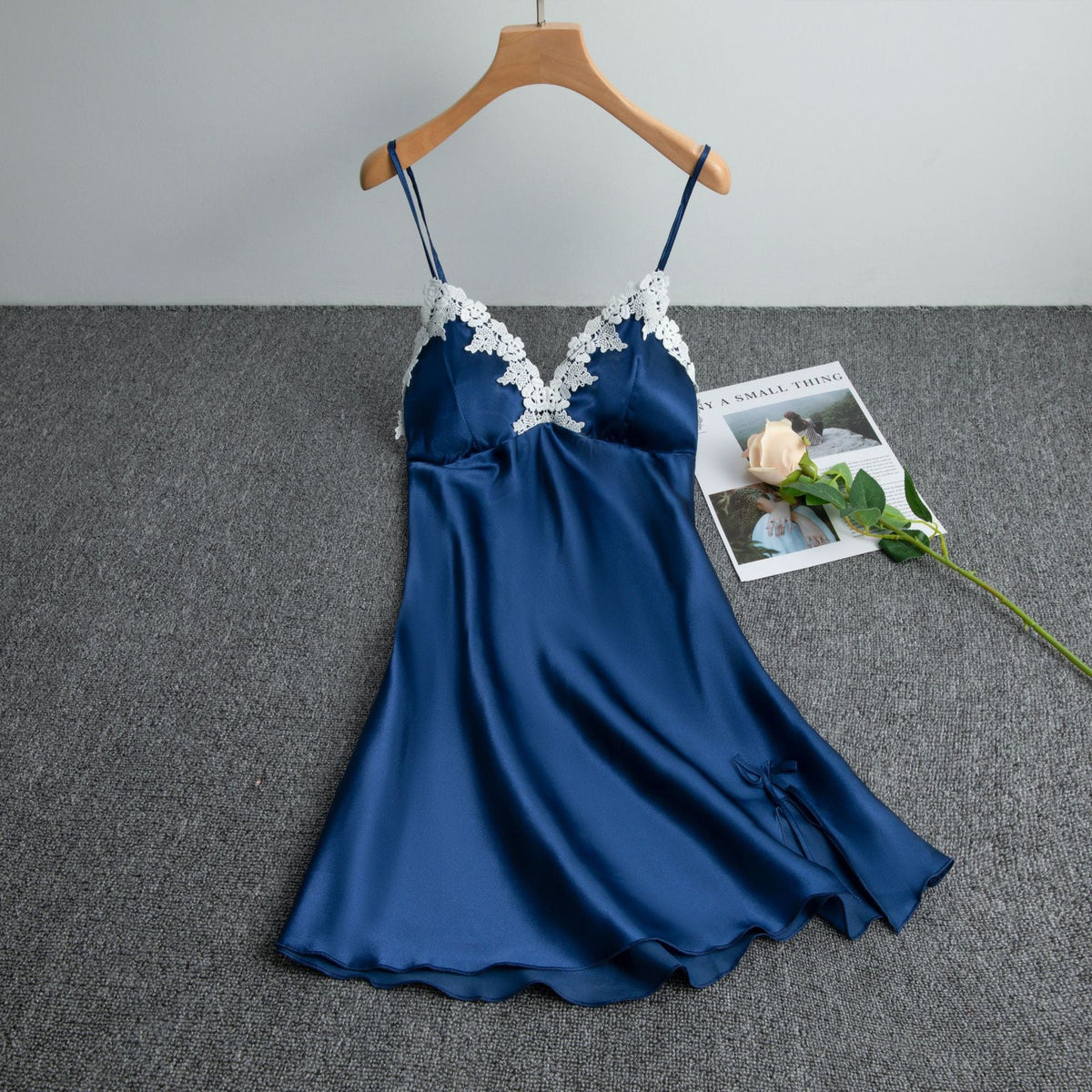 π Be the belle of bedtime! This ice silk nightgown wraps you in princess vibes with a lightweight, backless charm.