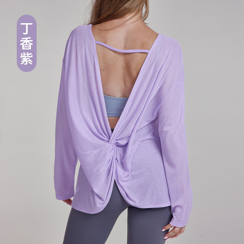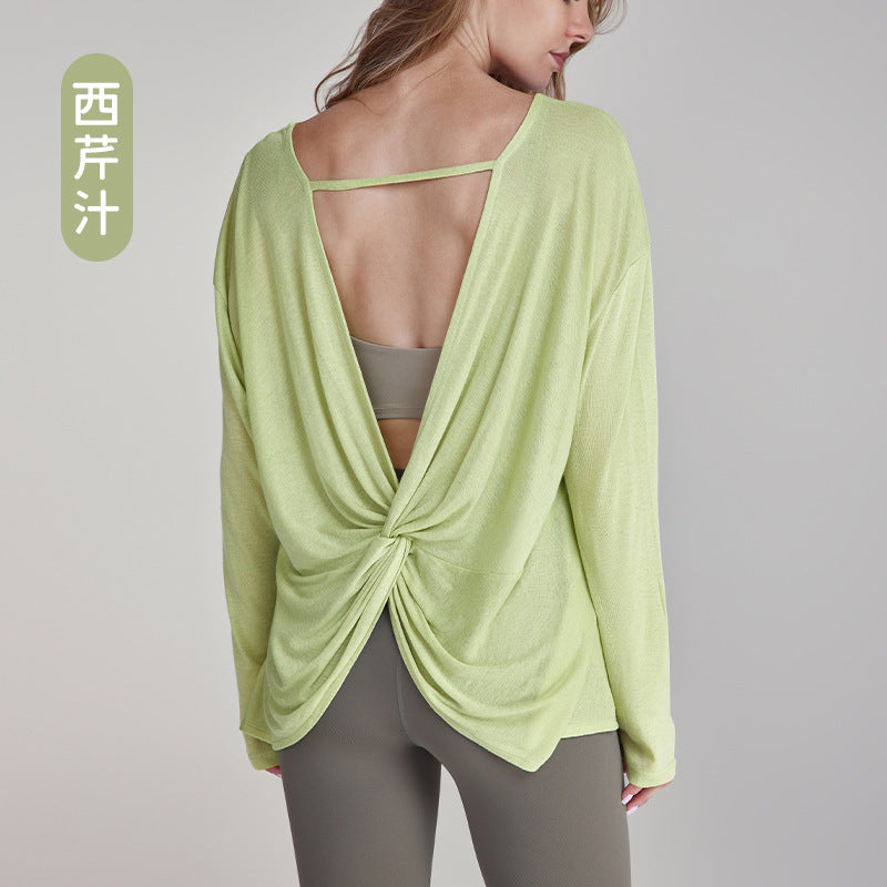 This loose-fit yoga top features a stunning twist detail on the back that adds a sexy, European and American-inspired flair. Made from soft, lightweight fabric, it offers breathability and freedom of movement for yoga, workouts, or casual wear. 🧘♀️✨