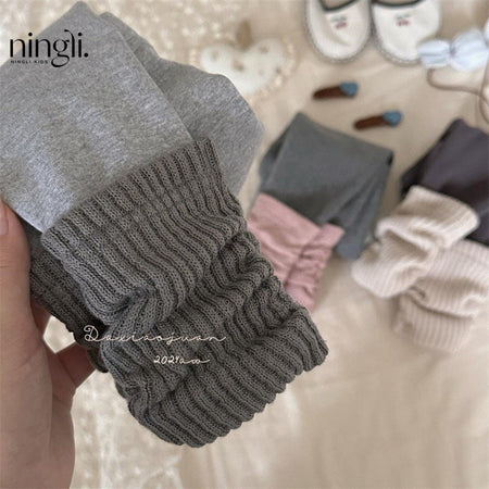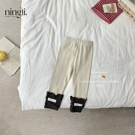 Girls’ Color-Block Leggings – Autumn Stylish Elastic Pants