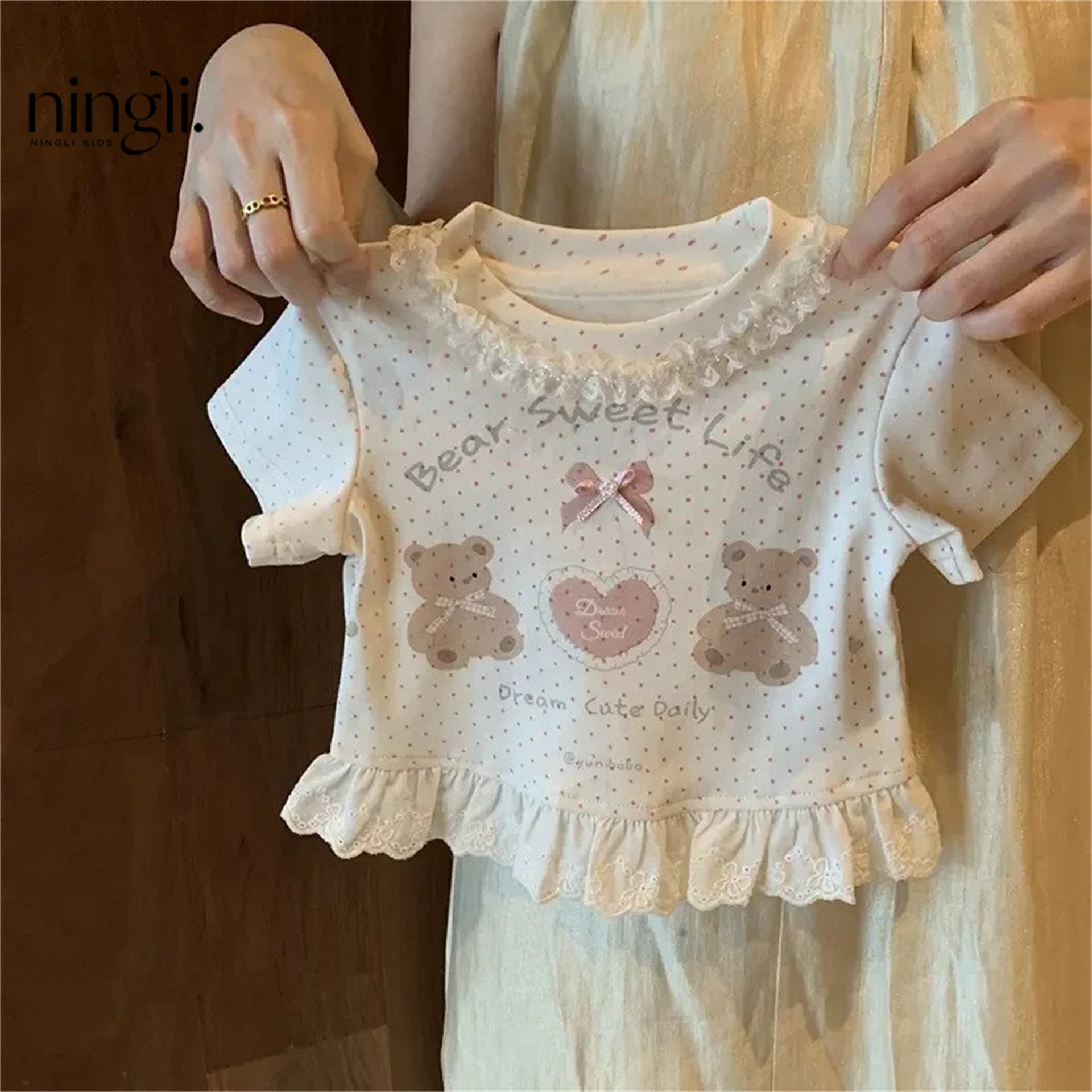 🌞 Protect and style your little one this summer with the Ningli Girls’ Sweet Kindergarten Suit, perfect for small and medium-sized toddlers 👧🎒. This adorable two-piece set includes a short-sleeved top and anti-mosquito pants, thoughtfully designed to keep your child comfortable, safe, and trendy throughout the warm months in Nepal 🏞️🌿.