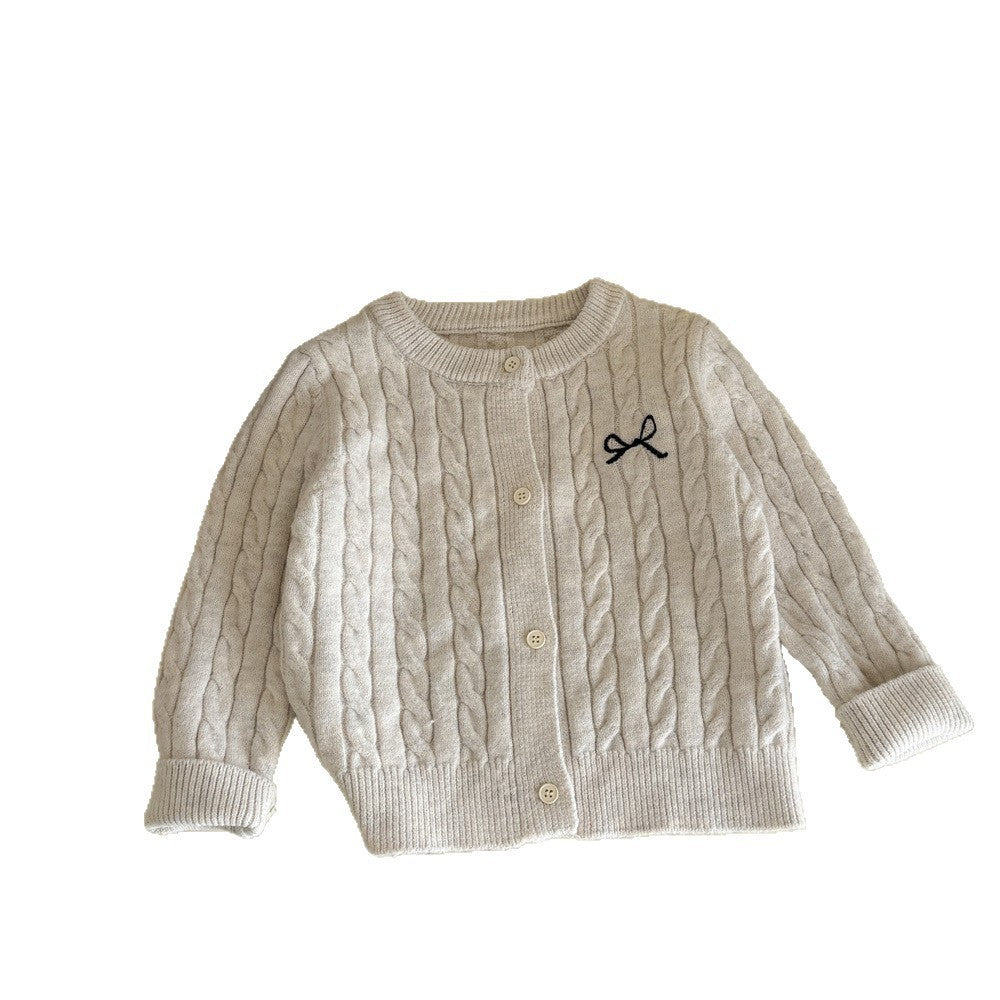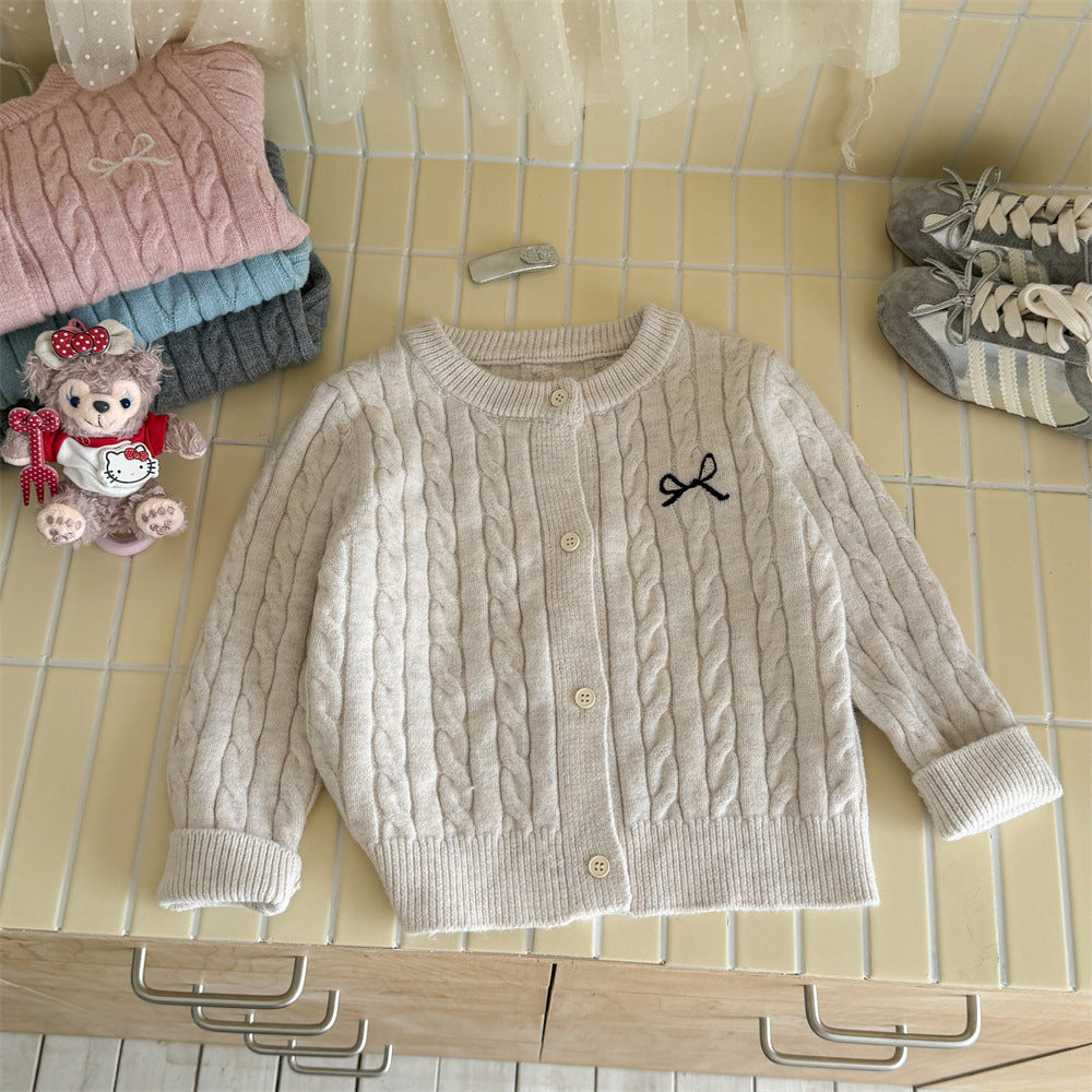 Girls’ Pure Color Knit Cardigan – Forest Style Autumn Jacket