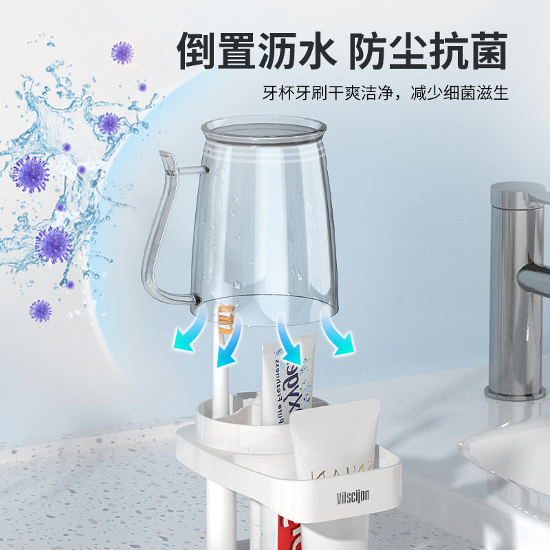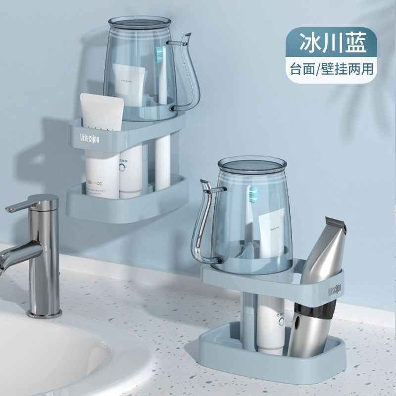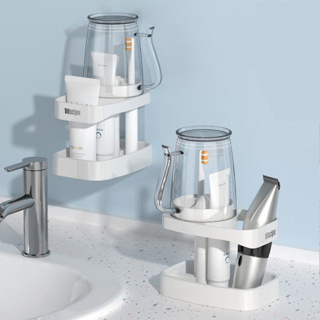 No-Drill Wall-Mounted Toothbrush & Cup Holder
