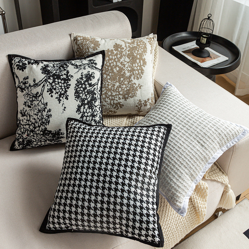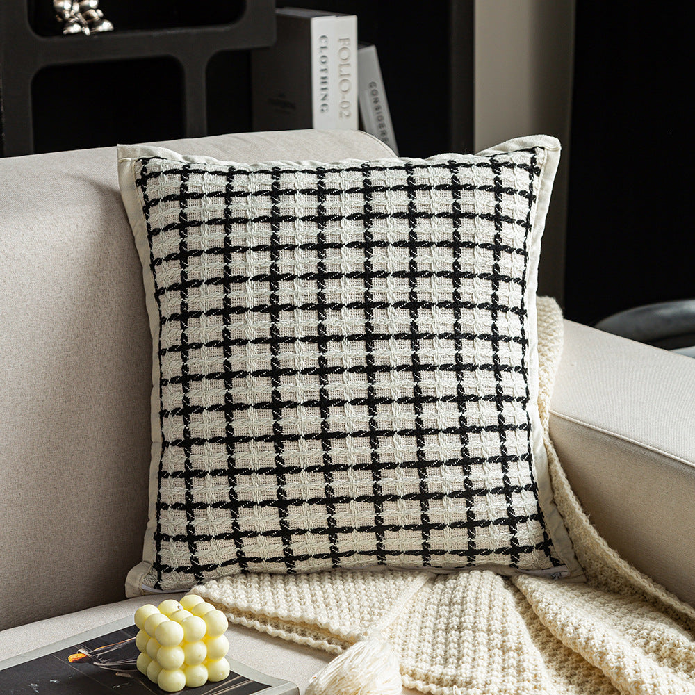 Nordic Black & White Line Pillow β Chenille Sofa Cushion