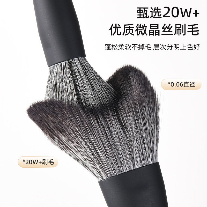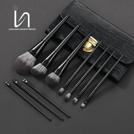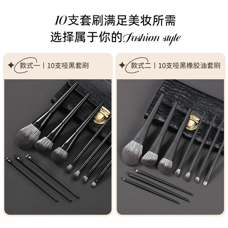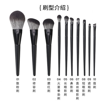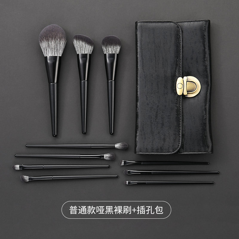 Matte Black Nylon Hair Makeup Brush Set – Portable Powder &
