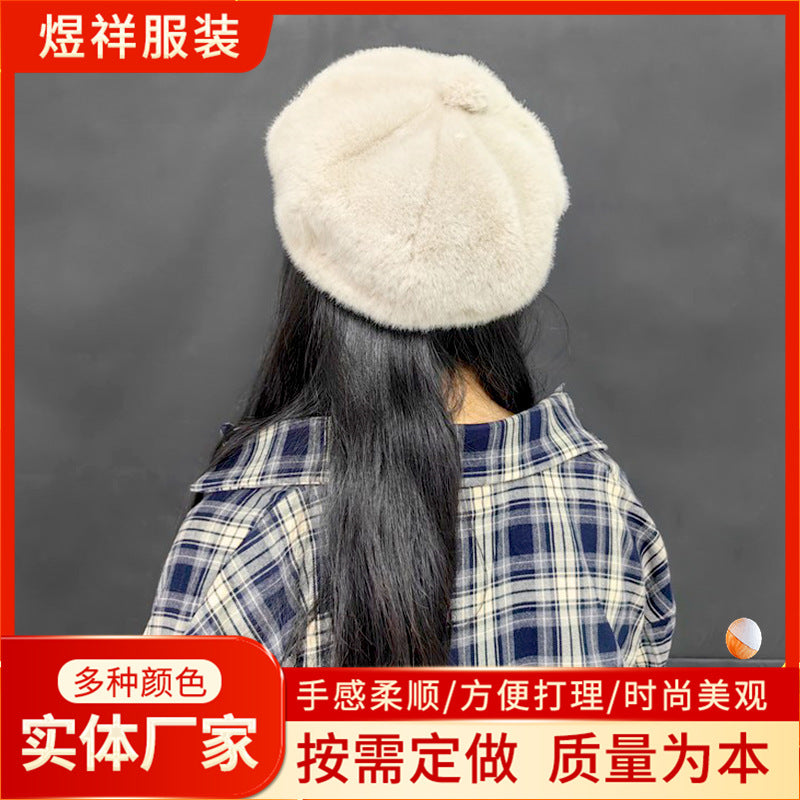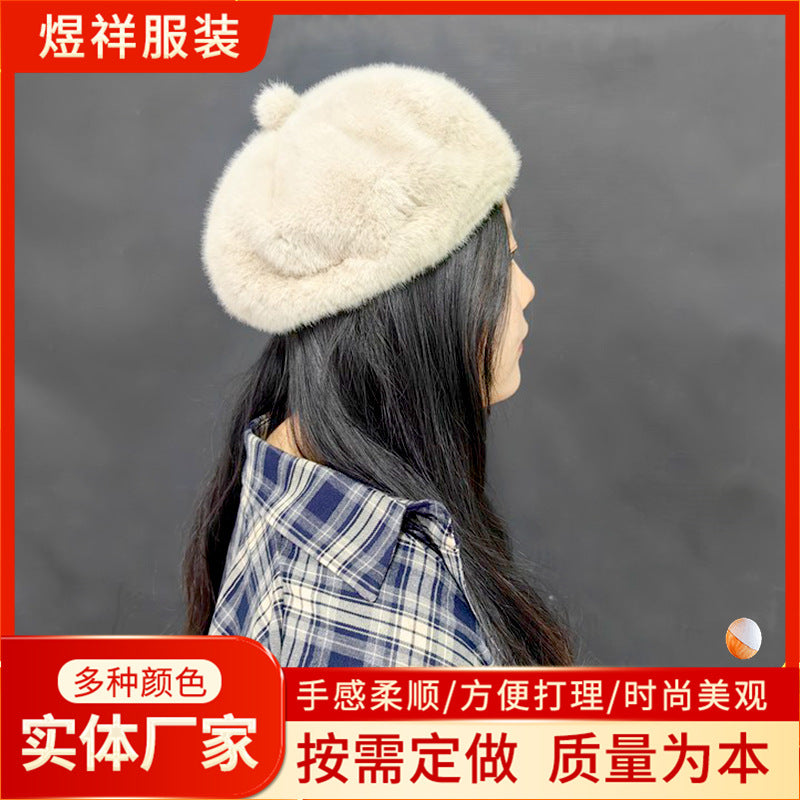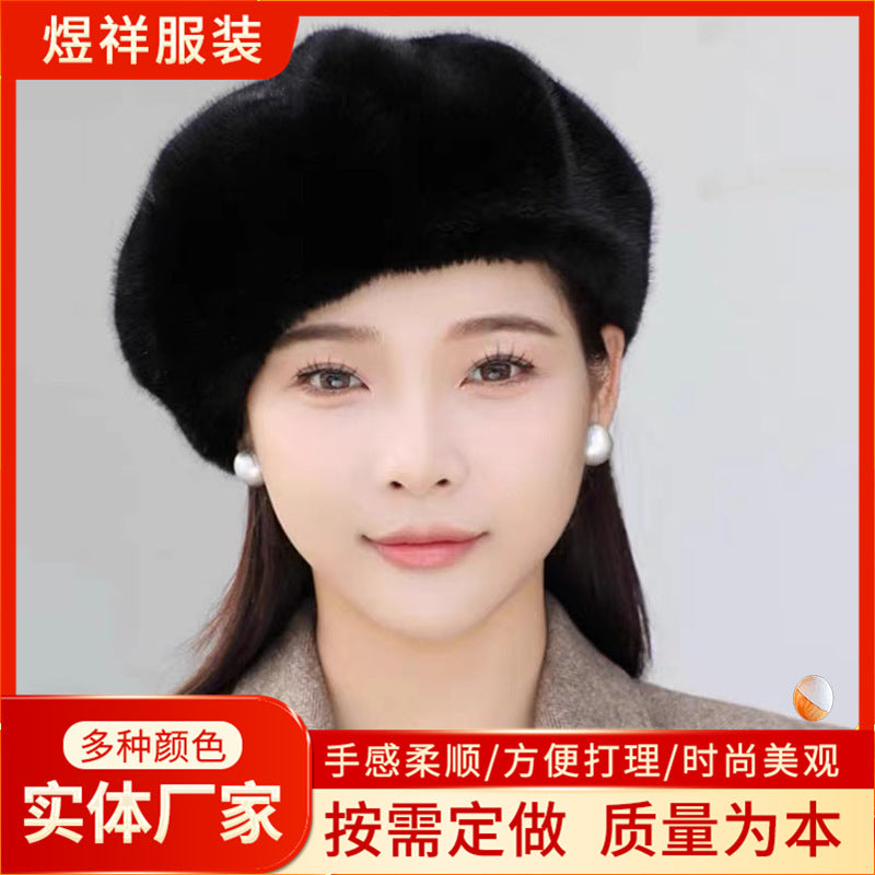 Winter Faux Mink Beret – Thick Warm Octagonal Cap for Women
