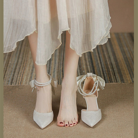 Add a touch of fairy-tale elegance to your look with our 2024 Spring & Autumn Pearl Bow Stiletto Heels! β¨ These dreamy pointed-toe sandals feature a hollow design, delicate pearls, and a cute bow β perfect for bridesmaids, weddings, or any magical moment. Lightweight and stylish, theyβre made to turn heads! π