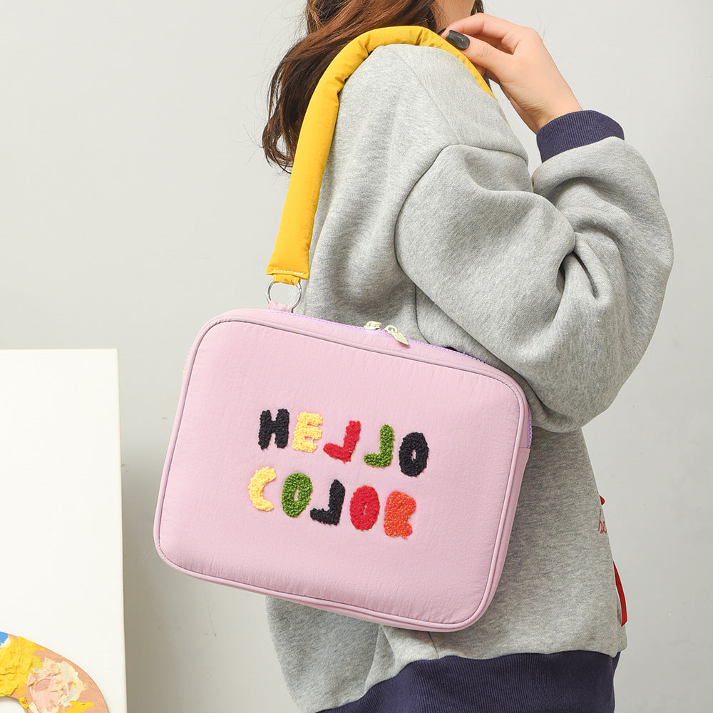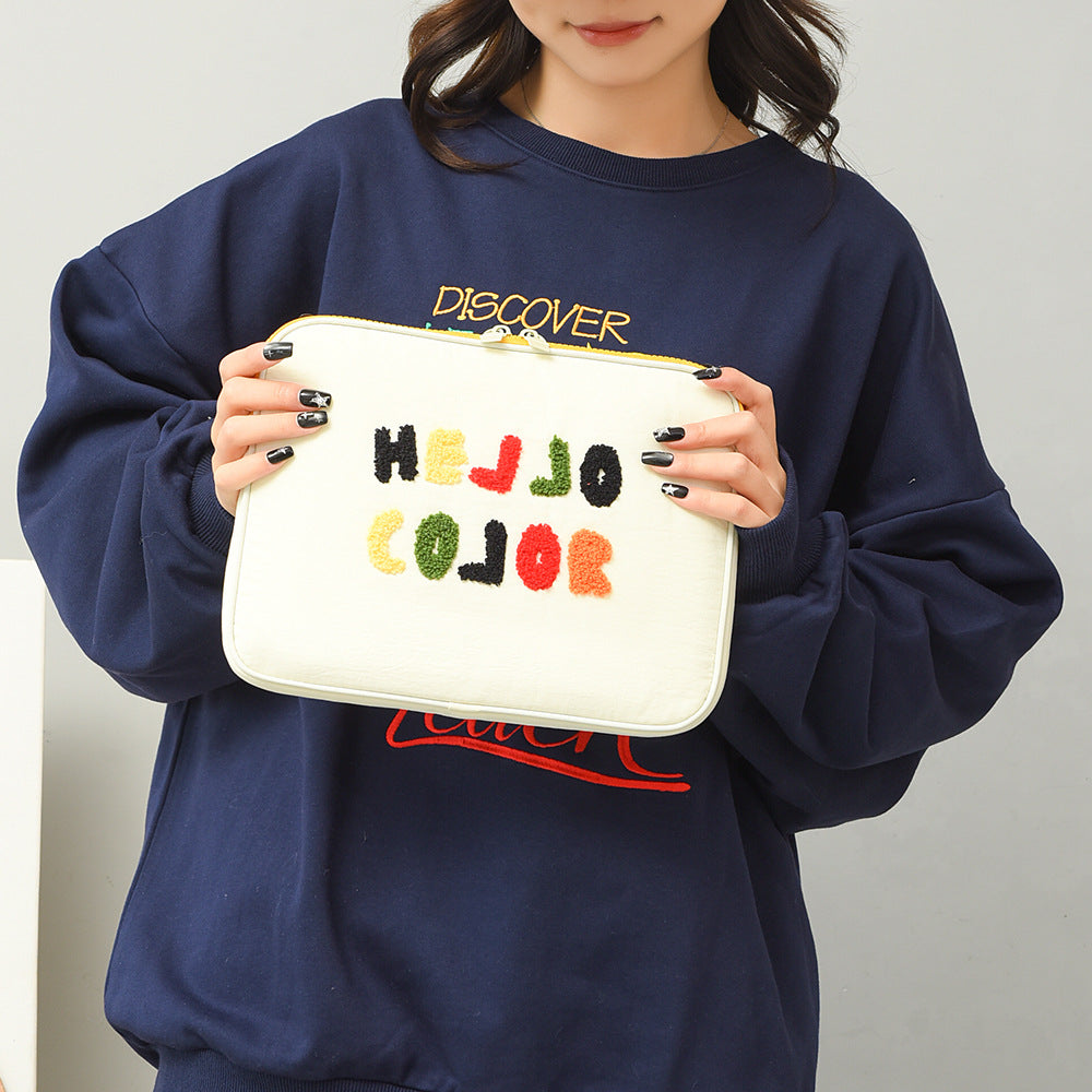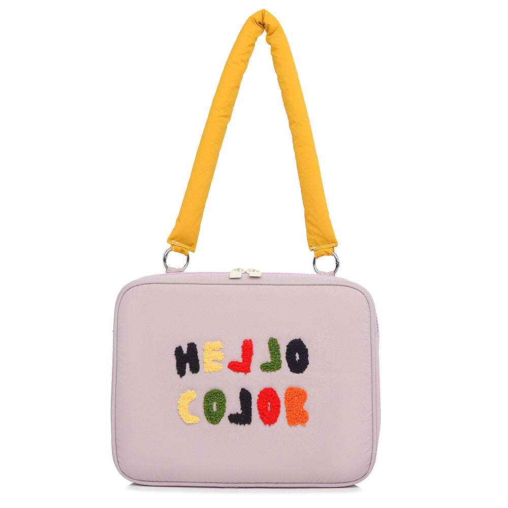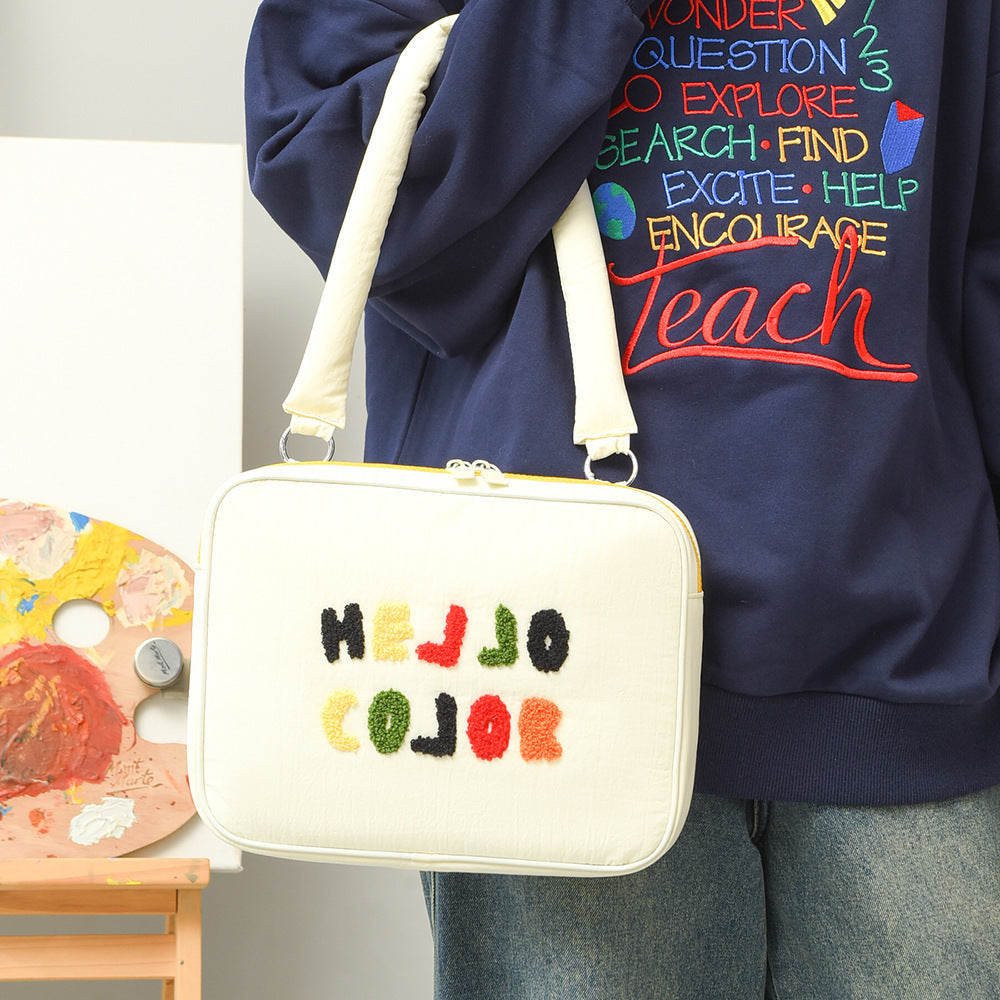 Elevate your tech accessories with this original embroidered towel shoulder tote bag, designed to carry your 11" or 13" laptop or iPad in style. 🌟 Featuring a chic contrast color design and embellished embroidery, this bag offers both fashion and function, while providing shockproof protection for your devices.