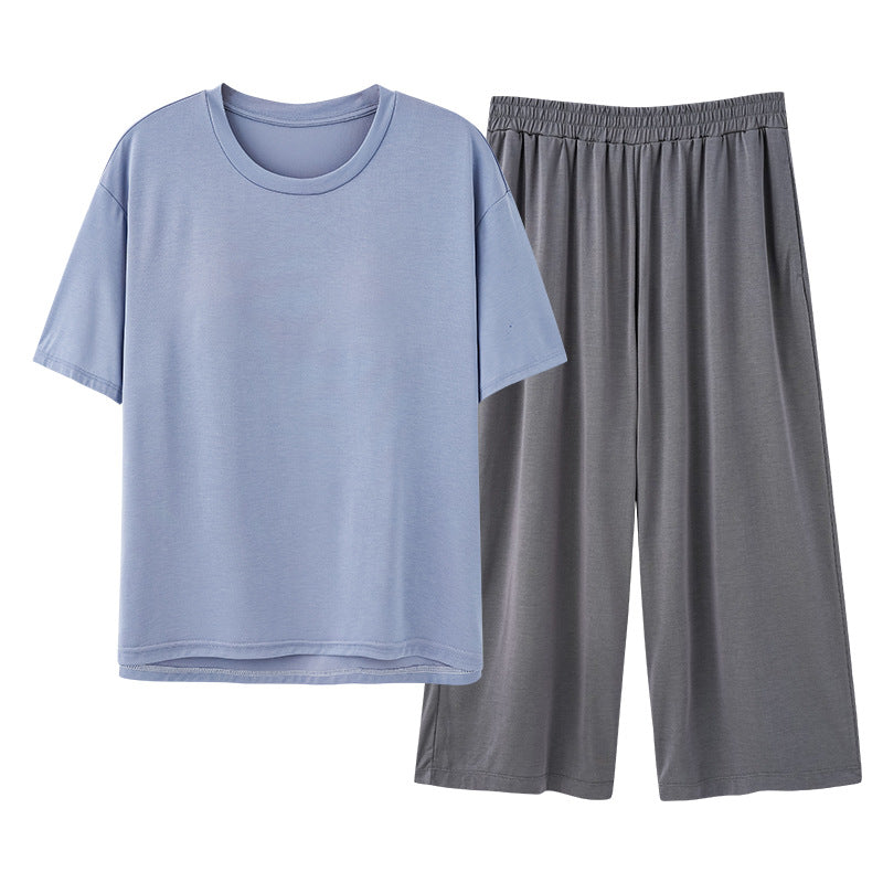 Made with soft, thin modal fabric, this set features a short-sleeved top with built-in pads (yes, no bra needed! 🙌) and cropped pants that give you a relaxed, breathable fit – perfect for warm nights and chill home days in Nepal. 🇳🇵☀️