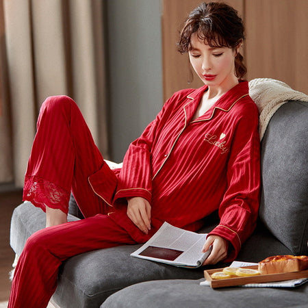 💝 Designed with a classic lapel collar and cardigan-style button-up top, it ensures ease of wear and timeless style. The long sleeves and full-length pants keep you warm during colder months while adding a festive, cheerful vibe to your home life.