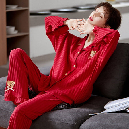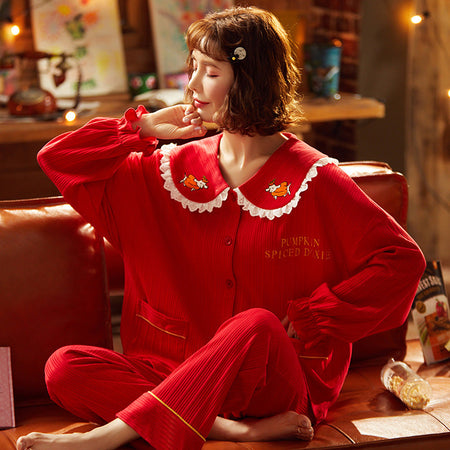 Celebrate warmth, tradition, and comfort with this Red Zodiac Cotton Pajama Set for women! 🐇🛌 Made with soft, breathable cotton, this cozy home wear is perfect for autumn and winter seasons, offering both style and snugness. The bright lucky red color and fun zodiac cartoon print make it a charming choice for the wedding season or Year of the Zodiac celebrations.