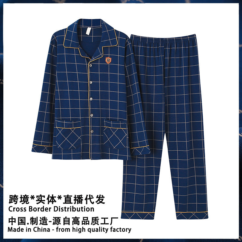 Knitted Cotton Men’s Pajamas – Comfortable Long Sleeve Set