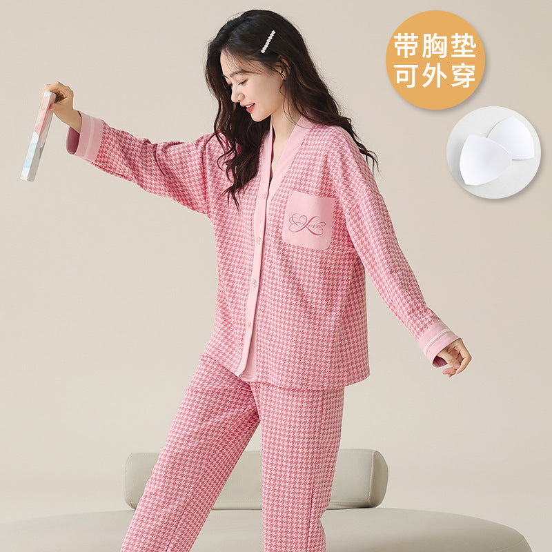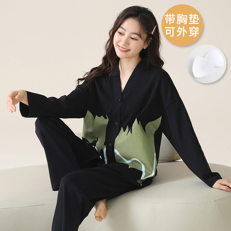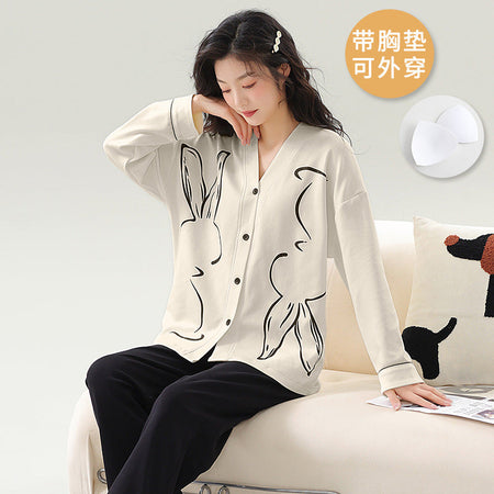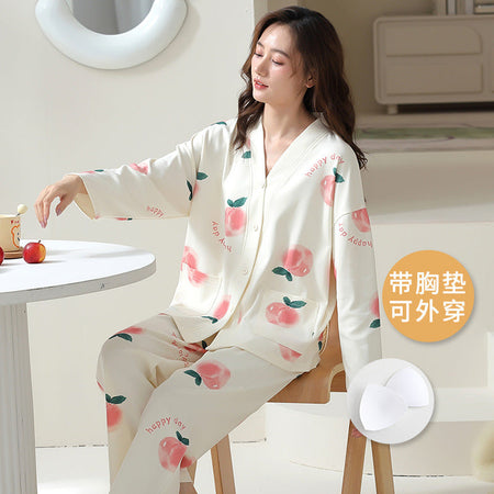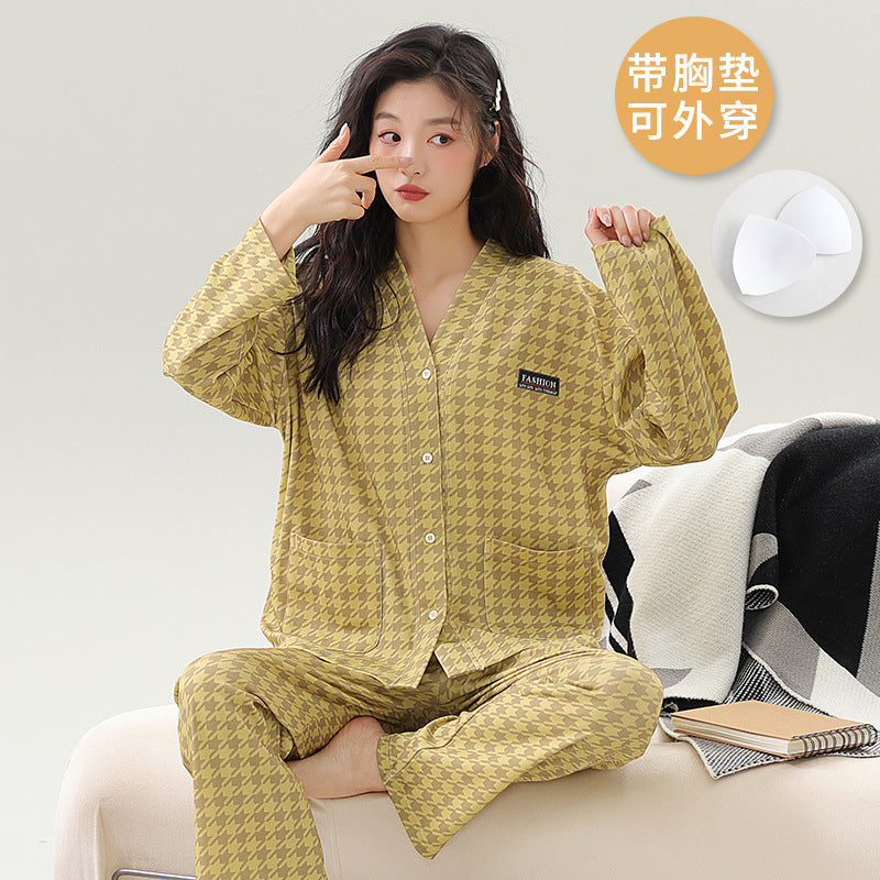 Stay comfy and carefree in our Women’s Long Sleeve Pajama Set with Chest Pad – perfect for students and youth who love cozy style! 🌸 Designed for spring, autumn, and mild winter, this thin, breathable loungewear features a built-in chest pad for easy wear—no bra needed! The cardigan-style top adds a trendy, casual vibe, making it ideal for relaxing at home or even stepping out for quick errands. Lightweight, cute, and made for comfort. 🛋️