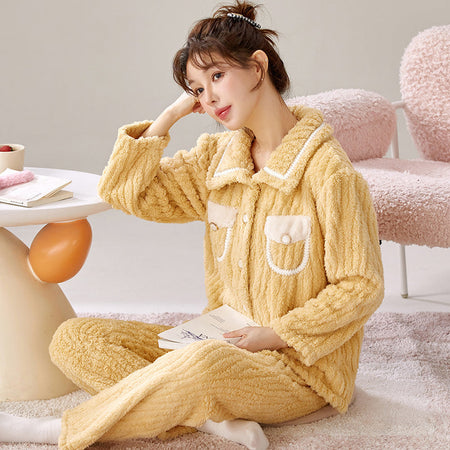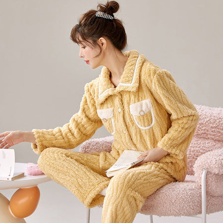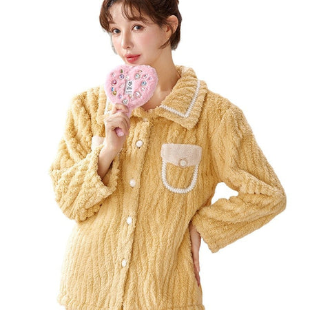 Designed in trendy Korean style, the set features a pullover top and matching pants, providing full-body warmth and relaxed fit for lounging, sleeping, or indoor activities. The soft and thick material keeps you snug, while the versatile design makes it perfect for daily homewear or gifting.