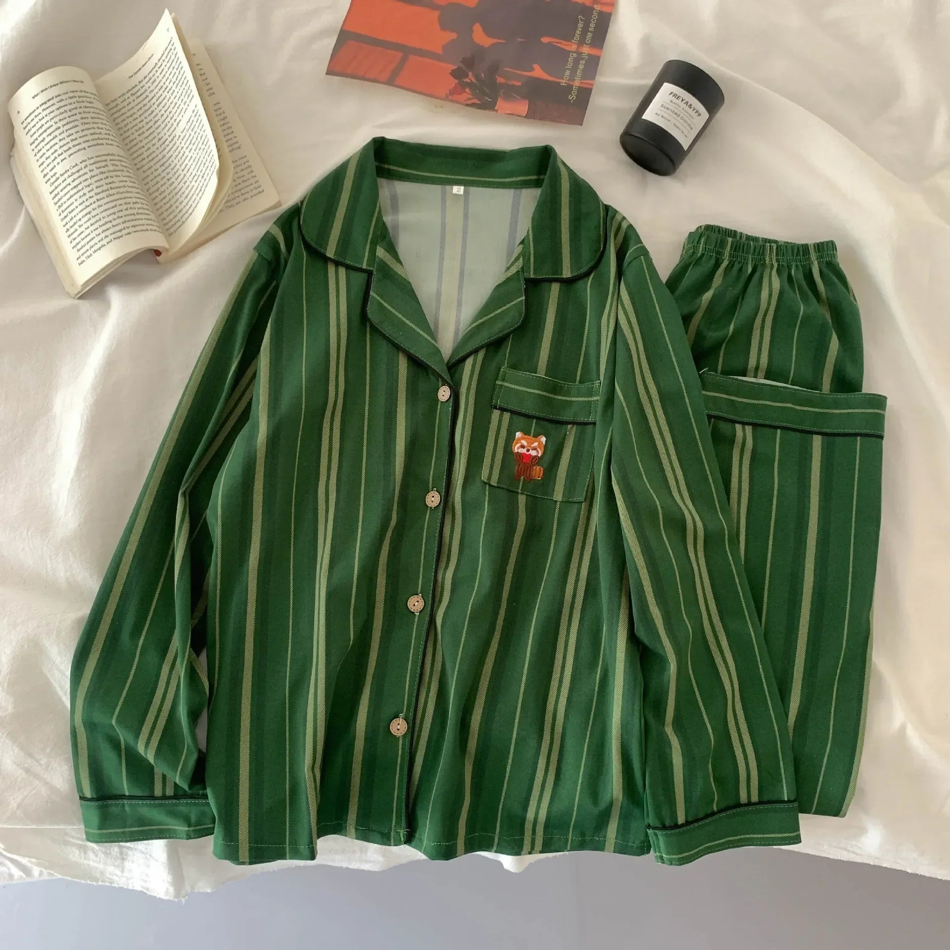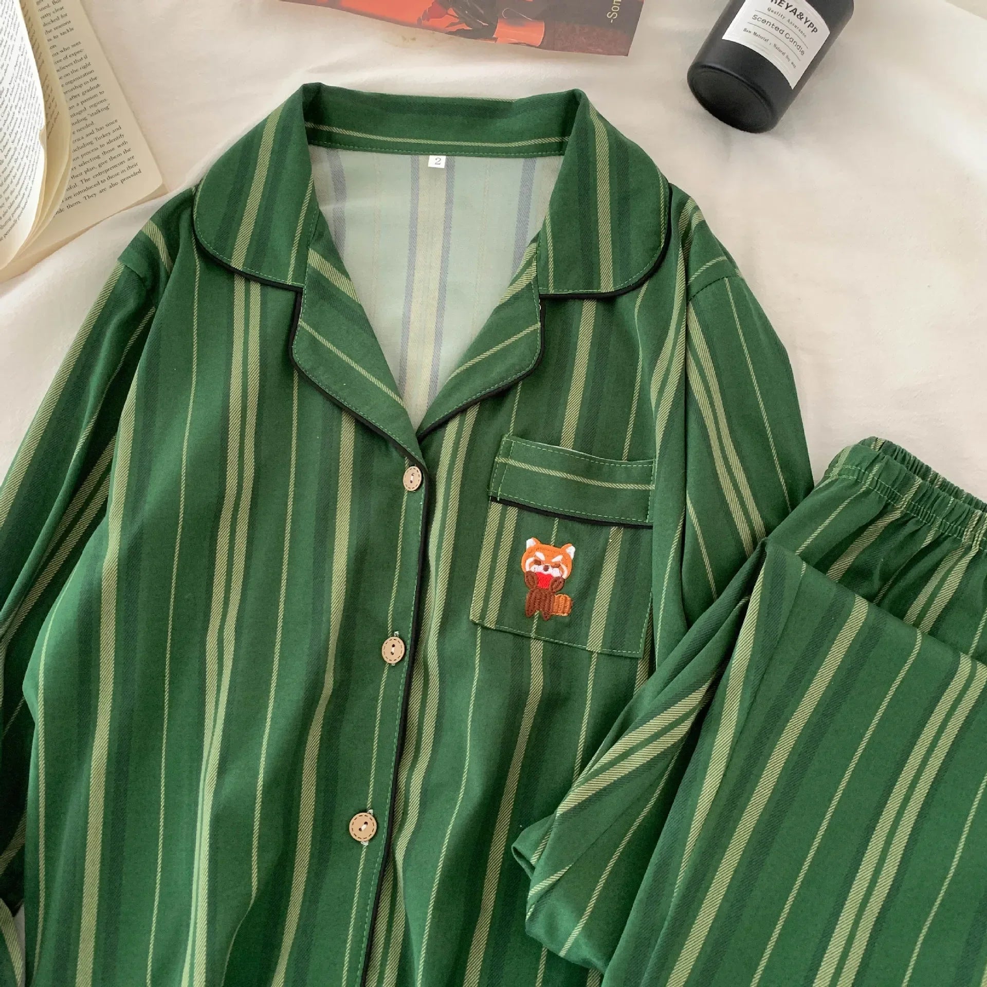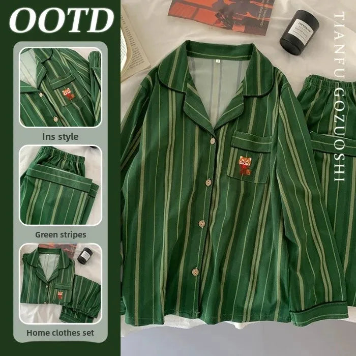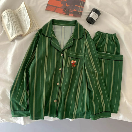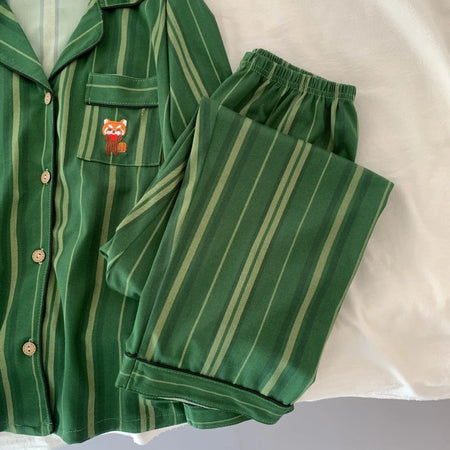 Cartoon Stripe Summer Cotton Pajama Set Women