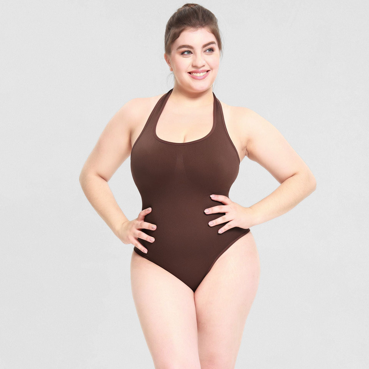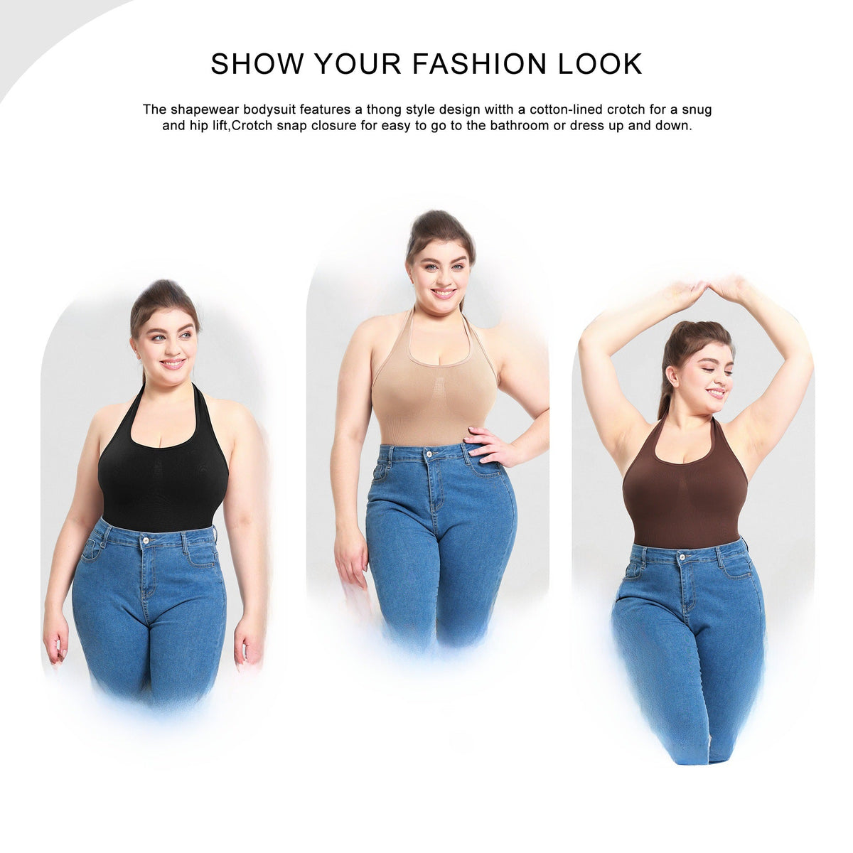✨ Say hello to curves in all the right places with this T-shaped plus size shaping bodysuit. With a stylish halter neck design, this corset pulls in your waist and supports your bust – no rolls, no lines, just smooth elegance.