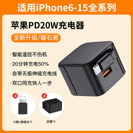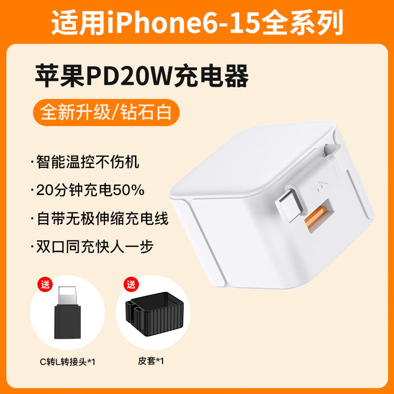 PD 20W Fast Charger with Foldable Telescopic Cable